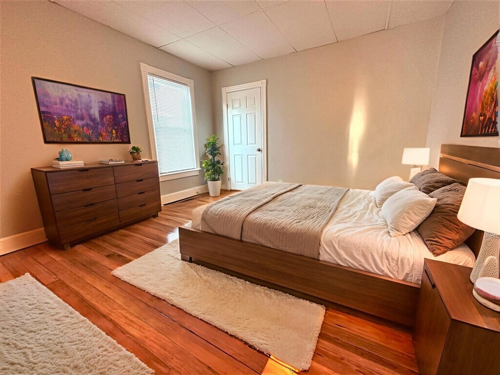 First floor apartment with hardwood floors & private front entrance with private porch/deck that is covered! NEWER Gas heat (forced hot air) and hot water! Replacement windows,HUGE eat-it kitchen and coin-op laundry. 2 off-street parking spots. Ideal location in a quiet 4 family house. LOCKABLE STORAGE UNIT just for your apartment in basement. DUMPSTER on-site (so you don't have to buy town bags). CATS OK. OPEN HOUSE ONLY for interior walk throughs THIS FRIDAY 10/10 FROM 5-6 PM & SATURDAY 10/11 FROM 1-2 PM. JUST SHOW UP. APPLICATIONS will be available at the open houses THIS FRIDAY & SATURDAY! MLS# 73441491