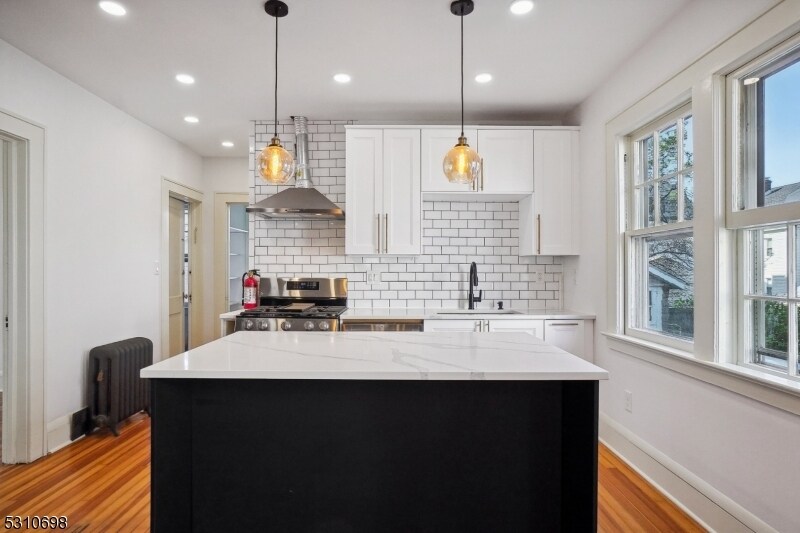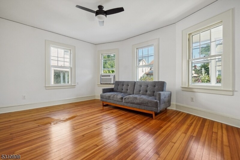 First-floor apartment in two-story home has been newly renovated. Two bedrooms and one bath. Open kitchen with lots of sunlight and new stainless-steel appliances, dining room is open to kitchen. Spacious living room, great-sized bedrooms and hardwood floors throughout. Amazing, shared backyard is fenced and there is parking space for 3-cars. Laundry in the basement. Move right in! Convenient Bloomfield location with easy access to Garden State Parkway, Belleville Ave and Bloomfield Ave, close to Memorial Park with skate park and Foley Field. Tenant pays gas, heat, electric. Lawn maintenance shared with 2nd floor tenant. Snow removal, water, sewer provided by landlord.