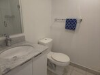 Feel at home in this luxurious 3-bedroom condo apartment, offering ample space and a great view. This apartment comes with a fully equipped kitchen and an in-suite washer and dryer. There is ample room to relax and wind down. The unit has many windows that are equipped with manual blinds and shades. The floor is wooden, so it is very comfy and warm. There is also a balcony overseeing the cityscape and busy York Street. [SI]