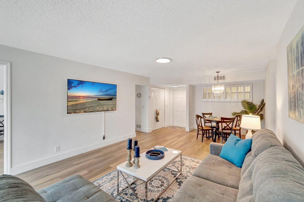 Welcome to this beautifully remodeled 2-bedroom,2-bath residence located in Colonial Club,an active 55+ Intracoastal waterfront community in Boynton Beach. This spacious second-floor corner unit features two bedrooms,each with its own en-suite bathroom and generous closet space,perfect for full-time living or hosting guests. The condo has been completely renovated from top to bottom,including a brand-new roof,new front doors,updated interior doors,remodeled bathrooms,bedroom wardrobes,and high-end finishes throughout. Enjoy the light-filled open layout,a modern kitchen with stainless steel appliances and quartz countertops,and a hurricane impact glass-enclosed patioideal for year-round enjoyment. Colonial Club offers resort-style amenities including a newly updated waterfront clubhouse,heated saltwater pool,fitness center,library and scenic walking paths along the Intracoastal. Just minutes to the beach,shopping,dining,and vibrant Downtown Delray Beach. MLS ID B26009290
