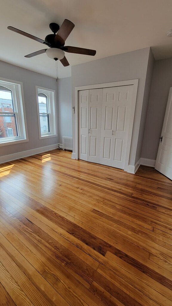 Stunningly renovated one-bedroom, one-bathroom apartment located in the vibrant heart of Downtown Frederick. Enter into a bright, open living area featuring hardwood floors, a convenient storage closet, and in-unit washer and dryer. The modern kitchen boasts stainless steel appliances, sleek granite countertops, and abundant cabinet space. The full bathroom offers a tub/shower combo with elegant tile work and extra cabinetry for additional storage. The spacious bedroom includes more closet space and large front-facing windows, inviting plenty of natural light. There is also access to your own private deck off of the living room. Heating and cooling is provided by mini split units. Please note that this is a 3rd story apartment and the staircase is the only access. Street parking, no smoking and no pets.