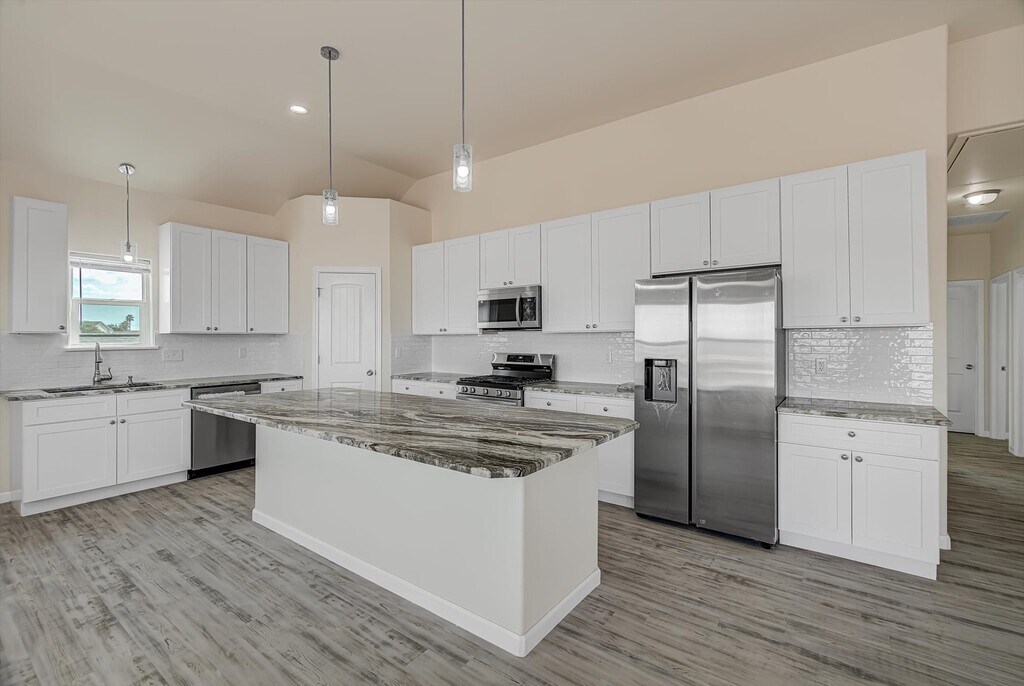 NEW CONSTRUCTION WATERFRONT! Canal front living at it's finest! 3 bedroom,two bath up with Open Flowing floor plan with exceptional views! Entertain from your living,dining & kitchen with island bar showcasing wall of windows streaming natural light,vaulted ceiling. Samsung appliances,42" cabinets,1" thick granite counter tops,soft close cabinets & doors,walk in pantry with Vinyl Laminate flooring through out. Spacious Primary won't disappoint,with walk in closet,luxury en suite with double sink,tiled shower. 2 secondary bedrooms w/hall bathroom. Massive double garage 3 ft elevated,providing entry stairs & offering extended entertaining area. 35 X 50 extension of property across the street also included for additional parking. 20KW Cummins backup power generator with auto-transfer switch,3.5 ton 16 SEER HVAC,gas tankless water heater,PEX plumbing. Boathouse for 24' boat & pier for fishing & crabbing. Quick & easy access to the bay! Also For Sale $549,900. MLS# 85970644
