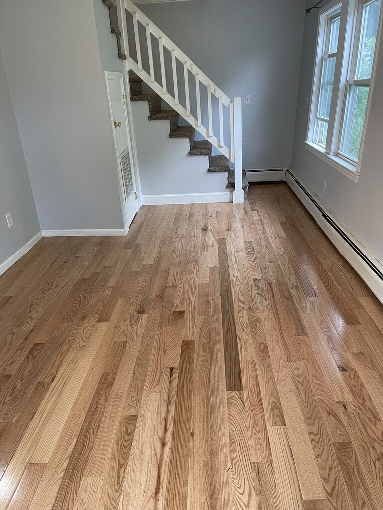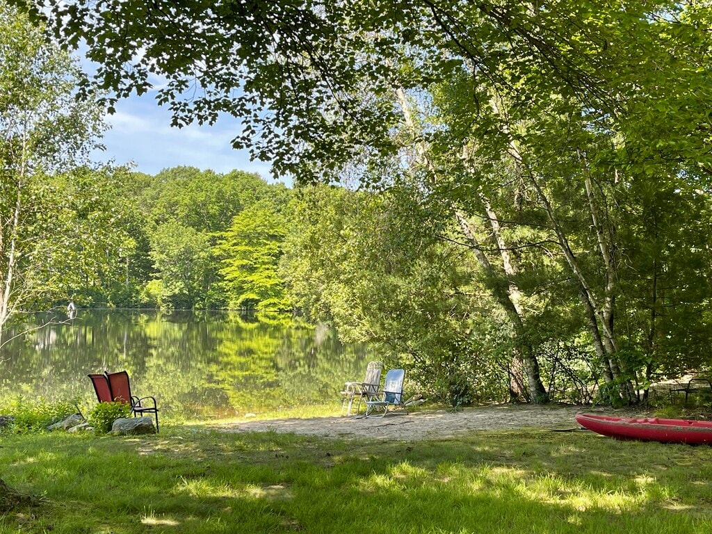 Enjoy peaceful waterfront living in this charming two-bedroom townhouse, part of a duplex, sits on a private property complex on Ames Long Pond. The first floor features a living room leading to a deck overlooking the pond, a kitchen with a dining area, a bathroom, and a laundry room. Upstairs you will find two spacious bedrooms, including one with a walk-in closet. Every room- living room, kitchen, and both bedrooms-offer serene water view. New hardwood floors throughout. Relax with daily lakefront view, stunning sunsets, crisp night air, and family gatherings on the deck or in a spacious shared yard. Enjoy access to a private beach, perfect for fishing, swimming, kayaking, and all that the Pond has to offer. Conveniently located near Rte. 93, 95, and 24, two commuter rail stations, the property is just minutes from Stonehill College and Borderland State Park. Boston is a 25-minute drive, while Providence and Cape Cod are within 40-minutes, and Gillette Stadium is just 20 minutes away.