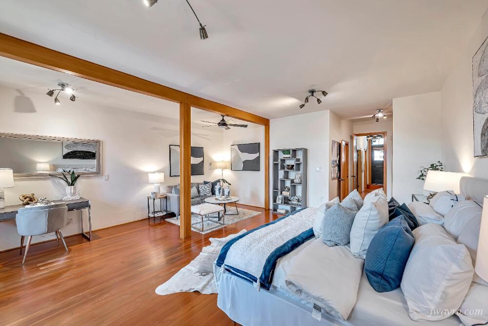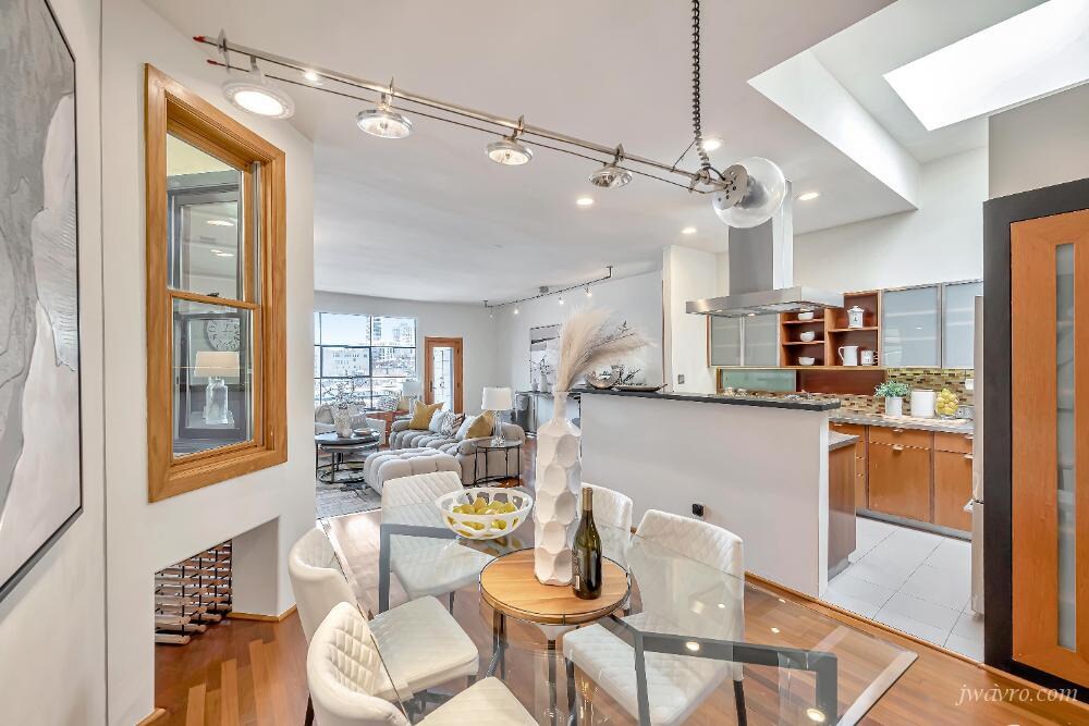 Updated 3+ bedroom 2 bath home overlooking the financial district.Features:~ Open living and dining floor plan~ Two large South facing decks~ Hardwood floors~ Upgraded kitchen with stainless appliances~ Spacious master suite~ Laundry in unit.Parking lot nearby.Excellent location!Easy walk to Financial District and North Beach restaurants and shopping.