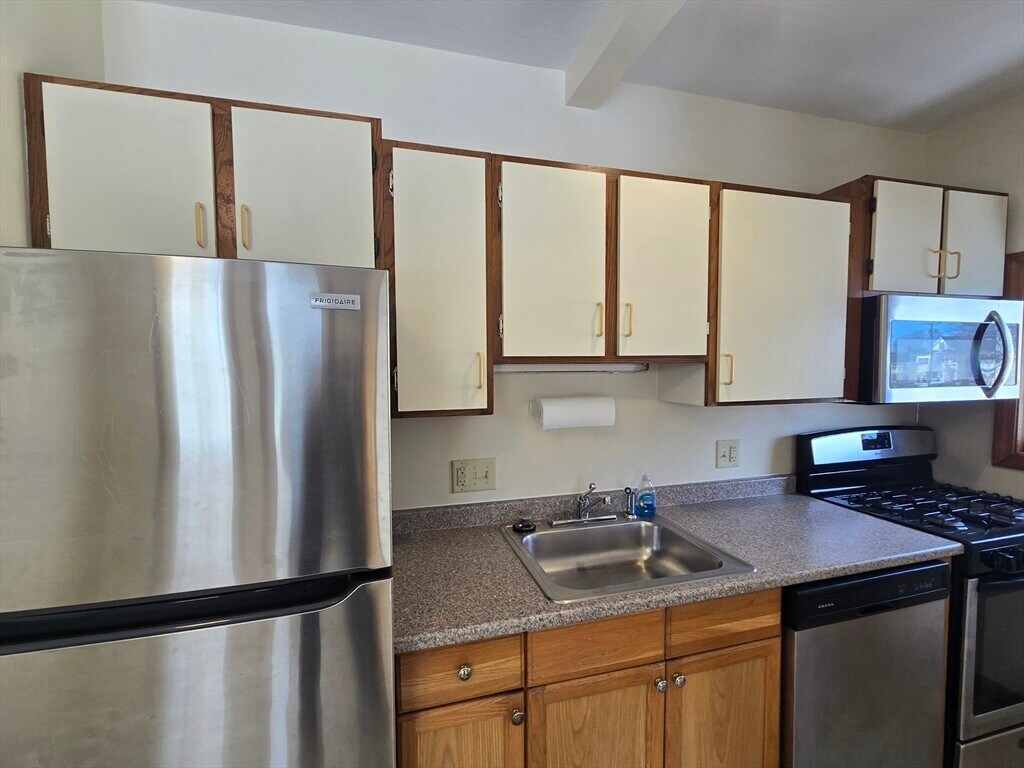 Welcome to this beautiful,bright and sunny apartment on the 2nd floor of a 3 level walk up. This well maintained and lovely home offers a great layout with a spacious eat in kitchen featuring new stainless appliances and gas cooking,good sized living room,2 bedrooms plus office or den,full bathroom,coin op washer/dryer in the basement,private front and rear porches and use of the back yard for summer grilling,etc. The entire apartment has been remodeled recently. Included with the rent are water,sewer,trash removal,plenty of parking,snow removal and landscaping. Tenant is responsible for the gas bill for heat,hot water and cooking as well as for the electric bill for outlets & lighting. Optional cable & internet are available. Great location on a side street near,Quincy Center T Station,busine,highway,shopping,etc. Management requires very good to excellent credit,verifiable income,good references & ID for this one year lease. No pets or smoking. MLS# 73476250