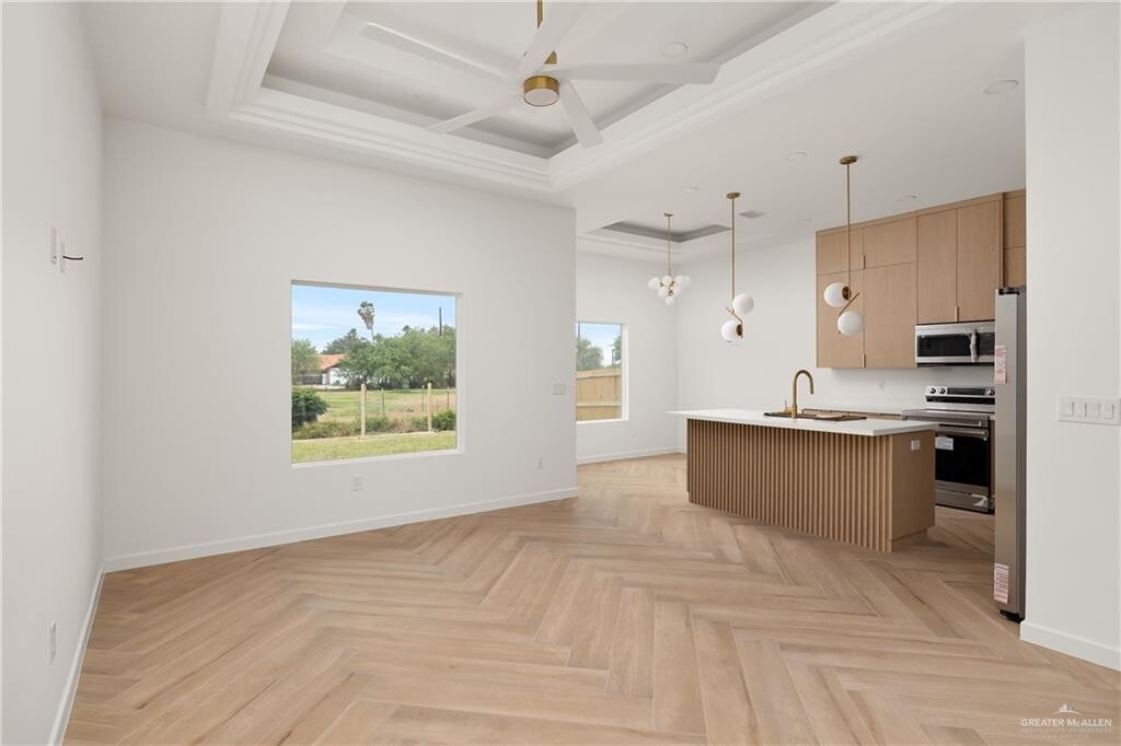 Rent to own option! This home is minutes from the expressway,UTRGV,shopping,dining,and local schools,with nearby entertainment including Bert Ogden Arena,H-E-B Park,and AMC Theaters. This home features 3- BD,2- BTH,tile flooring throughout,decorative ceilings,and an open-concept layout. The kitchen is equipped with all appliances included,and the home also offers a sprinkler system,electric vehicle charger in the garage,and a fully fenced yard.