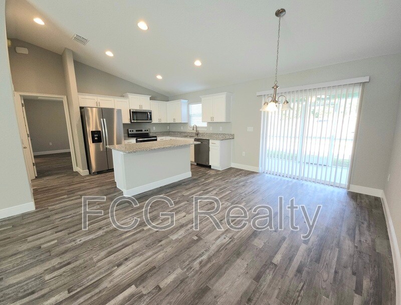 Welcome to your dream home in the peaceful and quiet neighborhood of Silver Springs Shores! This brand-new, move-in ready 3-bedroom, 2-bathroom residence has been thoughtfully designed with comfort, style, and functionality in mind. Inside, you'll find luxury vinyl flooring throughout, a modern kitchen complete with granite countertops and stainless steel appliances, and ceiling fans in every room for year-round comfort. The spacious primary suite features a walk-in closet and a private bathroom with a walk-in shower. Step outside to enjoy the screened-in back patio, perfect for relaxing or entertaining and a convenient two-car garage that provides ample storage space. Don't miss your chance to be the very first to live in this beautifully finished home. Schedule your tour today and make this house your home! Deposit and Fees: Application Fee: $50 per adult (every adult living on the property must file a separate application regardless of marital status, all application fees are NON refundable) Pet accepted upon payment of a pet deposit or a pet fee (specified by the Owner) Security Deposit is calculated based on credit and rental history, this amount is no lower than 1 month rent and can be up to 2 month rent. Requirements for rentals: Credit Score- we accept as low as a 550 credit score (unless otherwise specified by the association or the Owner) Income: Must exceed or equal 3 times the monthly rent on gross, average income. Rental History- No evictions or outstanding landlord collection. Properties where an association Approval is required may have additional document requested. FCG REALTY residents are enrolled in the Resident Benefits Package (RBP) for $39.95/month which includes a convenient option for renters insurance, HVAC air filter delivery (for applicable properties), credit building to help boost your credit score with timely rent payments, $1M Identity Protection, move-in concierge service making utility connection and home service setup a breeze during your move-in, our best-in-class resident rewards program, and much more! More details will be provided upon application.