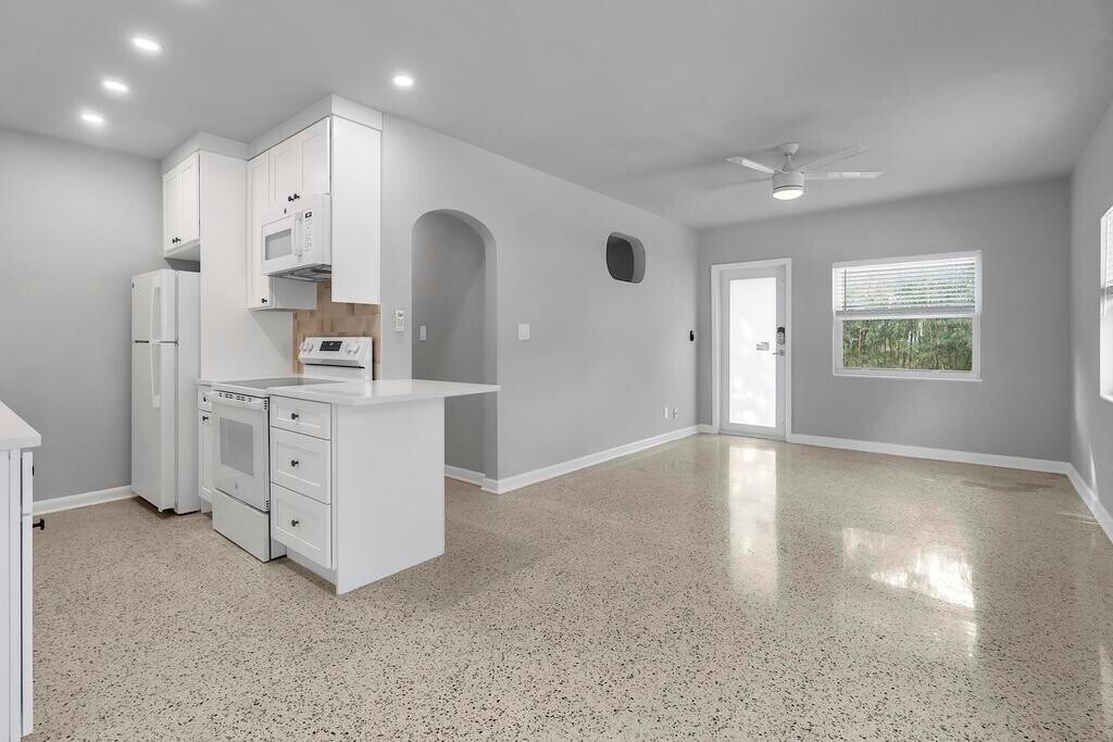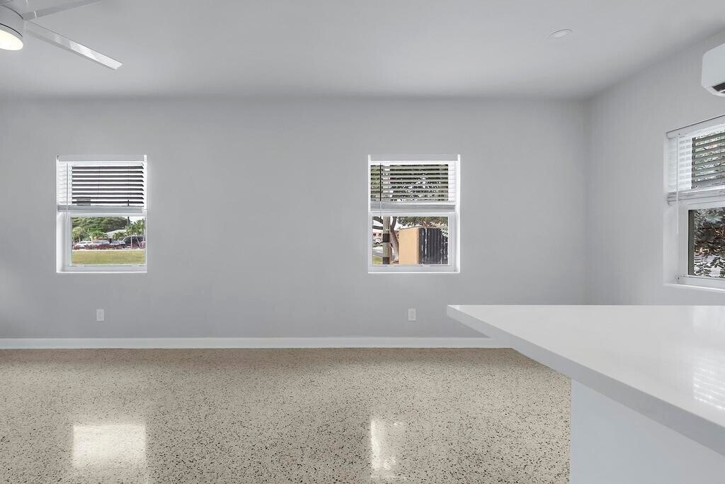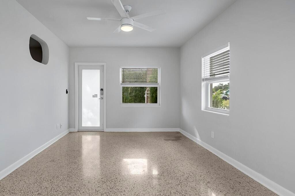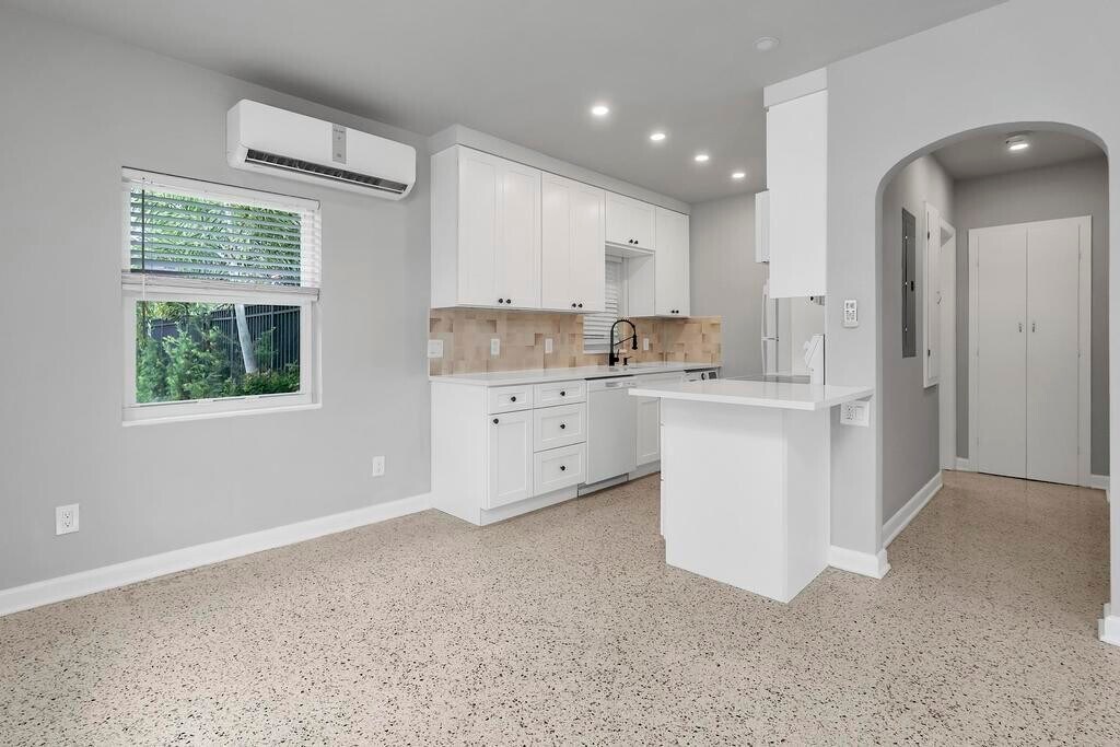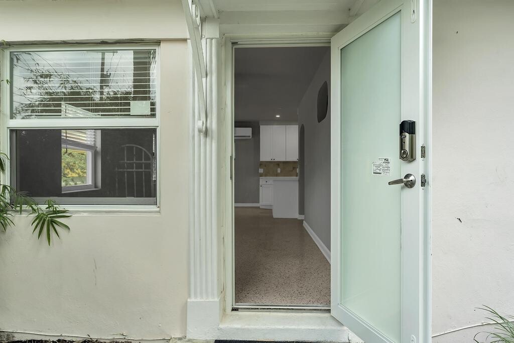 Freshly remodeled 1 bedroom 1 bath apartment with impact windows/ doors, terrazzo floors, mini split a/c system, in-unit washer/dryer and off street parking. Tucked away on a quiet street, blocks from downtown and just over the bridge from the beach.