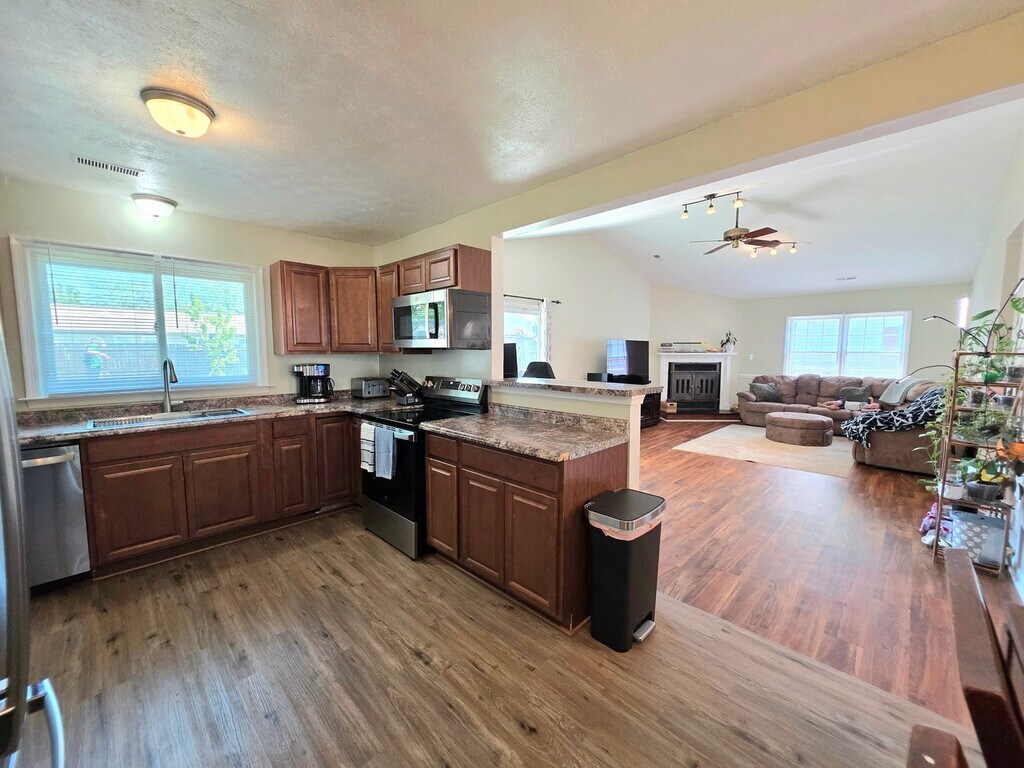 Come view this charming 3-bedroom, 2 full bath ranch home - this won't last long! Enjoy relaxing on the open front porch or in the fully fenced backyard—perfect for outdoor living. Inside, the home features an open living room with a cozy wood-burning fireplace, ideal for comfortable everyday living. The spacious kitchen offers ample cabinet storage and functionality. All bedrooms are carpeted with great natural light and generous closet space. Additional highlights include all appliances, washer and dryer "as is" and attached 1-car garage. Call or text the listing agent to schedule a showing. Pets OK with owner approval; $300 pet deposit per pet.