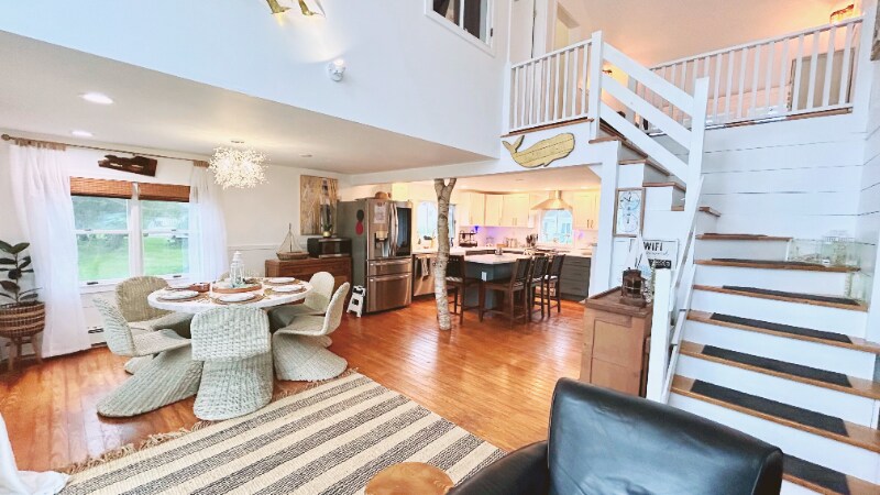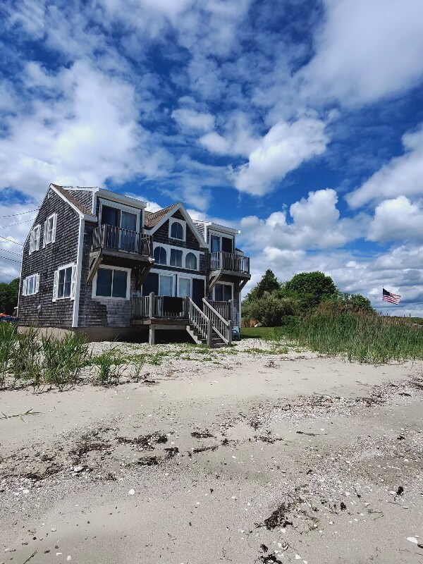 Property Id: 743821 Winter Rental - Welcome to this private beachfront smart home on Buzzards Bay offering peace, privacy, and plenty of space — over 19,000 sq ft of land and 200+ ft of beach frontage with views of Nantucket Sound, Naushon, and Cuttyhunk Island. The brand-new kitchen features smart LG InstaView appliances, gas cooking, and a Kohler Alexa faucet that dispenses exact amounts of water by voice. The first floor has an open living/dining area, spacious den, full bath, and laundry. Upstairs are three bedrooms (two with balconies overlooking water) and a modern full bath. Outside: huge private yard, fire pit, outdoor shower, private parking, and direct beach access. Can be provided furnished. Close to UMass Dartmouth, local fishing marinas, New Bedford, Westport, Providence, and Cape Cod. Just 1 hour drive to Boston or take the train on the new MBTA Commuter Rail station only 7 min away. Good credit required; tenant may be required to compensate broker.