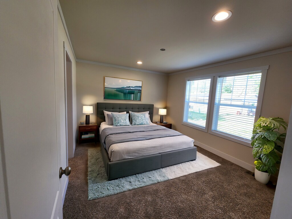 Discover the charm of this inviting home, offering warmth and character both inside and out. Eye catching two tone siding welcomes you in, while soft yellow walls throughout the interior create a bright and cheerful atmosphere. The thoughtfully designed kitchen is both functional and stylish, making it ideal for everyday living or entertaining. Those who enjoy cooking or appreciate a well appointed space will find this kitchen especially appealing. Comfortable carpeted flooring in the bedrooms and living areas adds warmth and creates inviting spaces to relax. The primary bedroom includes a private bathroom with dual sinks and a spacious walk in shower, offering everyday convenience. Located in the desirable Modern Manor community in Iowa City, this home provides peaceful neighborhood living just a short ten minute drive from downtown. Nearby parks offer easy access to outdoor recreation. The community is pet friendly, making it a welcoming place to call home. This charming and well located home is an excellent opportunity and is ready to be enjoyed.