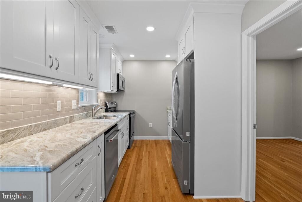 Experience refined Alexandria living in this stunning 4-bedroom, 2 full, 2 half bath townhome where timeless design meets modern sophistication.* Bathed in natural light, this beautifully maintained residence offers an airy, open floor plan accented by gleaming hardwood floors, recessed lighting, and an elegant neutral palette that enhances its spacious feel.* The gourmet kitchen impresses with sleek stainless steel appliances, stylish countertops, and abundant cabinetry, creating the perfect blend of style and functionality for everyday living and entertaining.* Upstairs, generous bedrooms provide comfort and flexibility, complemented by luxuriously updated baths featuring chic, spa-inspired finishes and designer tilework.* The fully finished lower level extends the living space with an ideal area for a home office, guest suite, or media room.* Step outside to a private, fenced patio oasis perfect for alfresco dining or quiet relaxation, with a storage shed available for tenant use.* Perfectly situated just moments from the vibrant shops and restaurants of Del Ray and Old Town Alexandria, with effortless access to Braddock Metro, the Pentagon, and Reagan National Airport.* This is a rare opportunity to call one of Alexandria’s most desirable communities home, available for immediate move-in.*