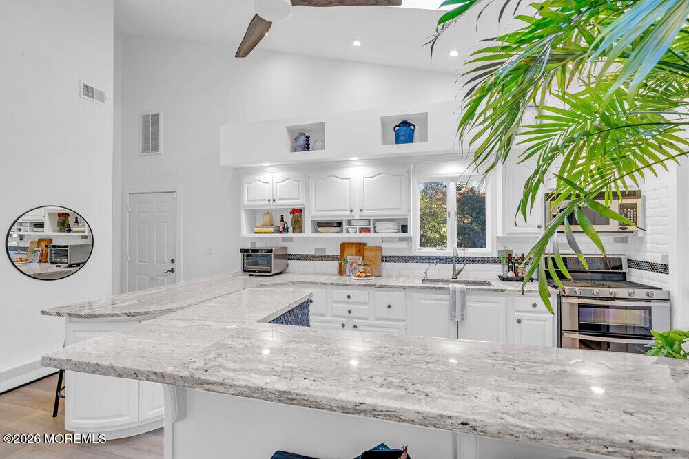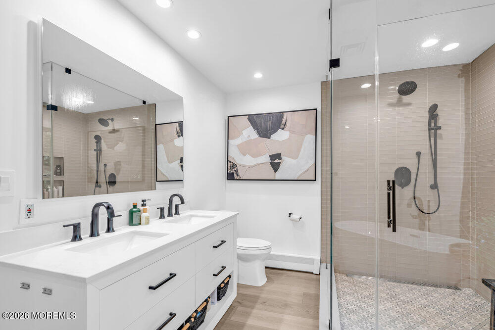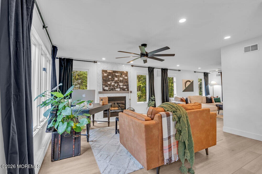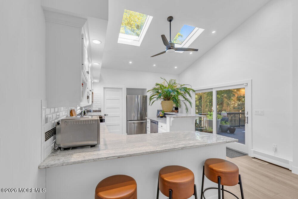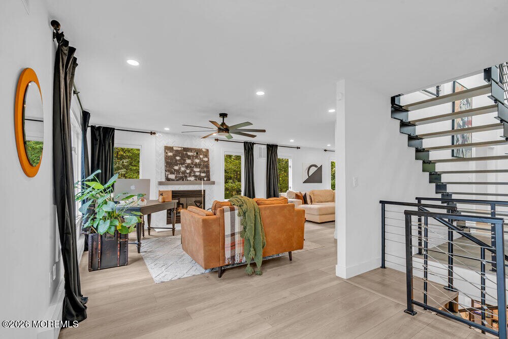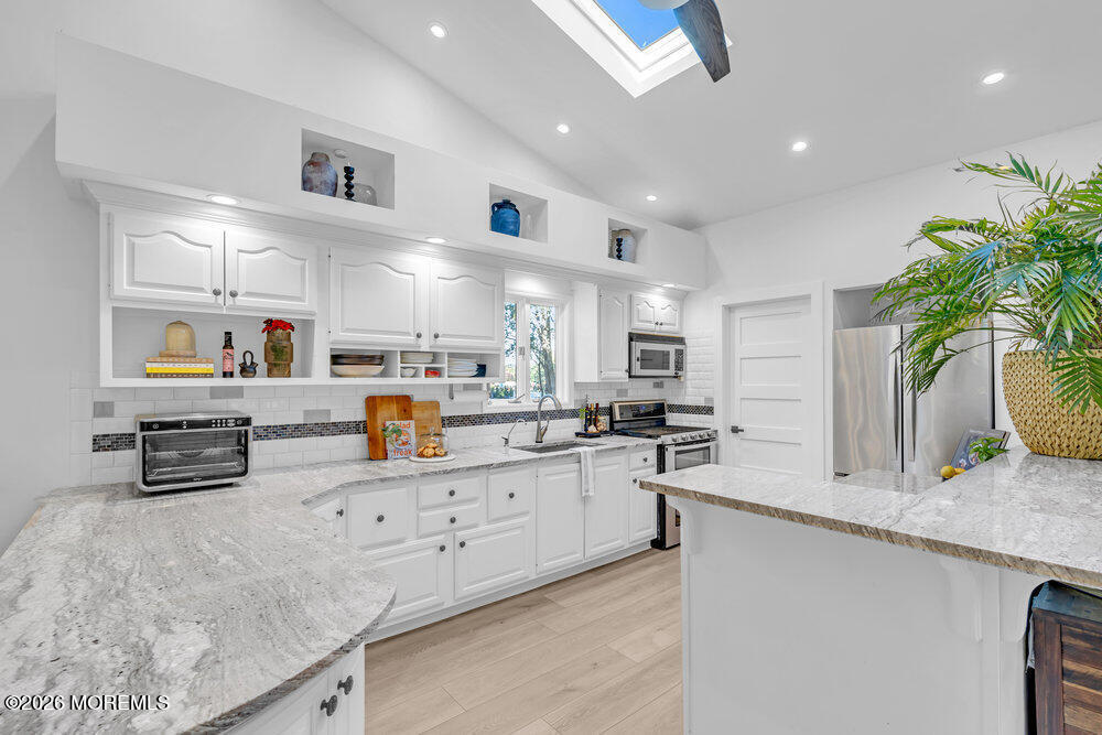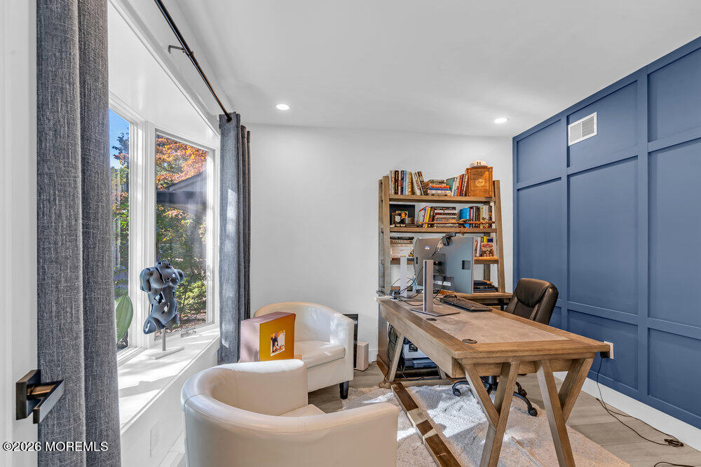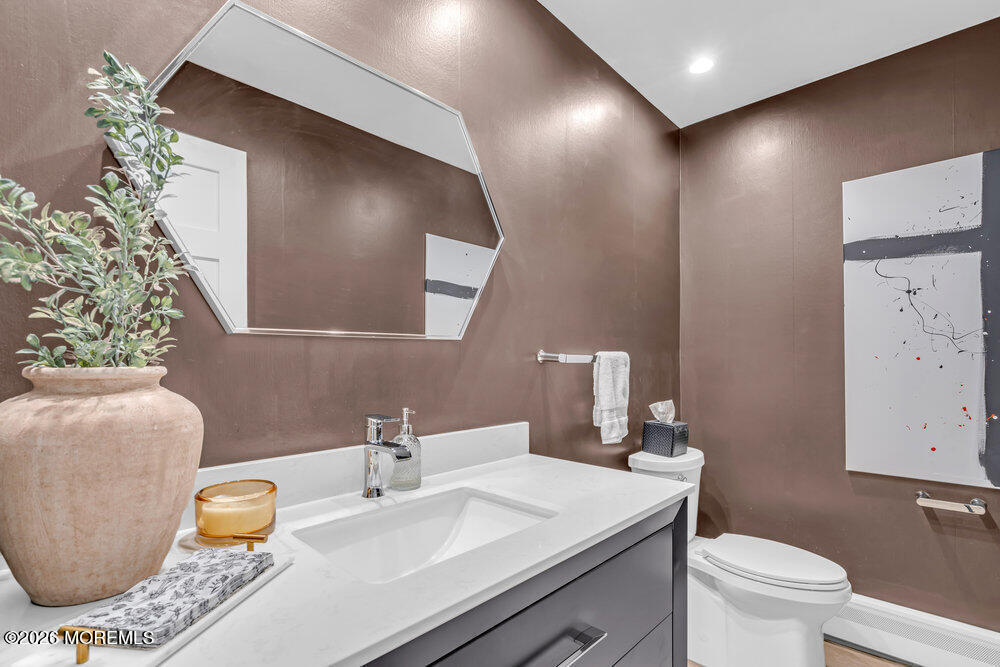 Rare lease opportunity presenting a fully renovated custom 3 bed,3 1/2 bath Center Hall Colonial in Colts Neck,convenient for NYC commute. Inside,a grand vaulted foyer w/ floating stairs opens to an expansive open floor plan with wide-plank flooring,skylights,atrium-style windows & bonus room,ideal for home office or 4th bedroom. The kitchen features custom cabinetry,granite counters,& dual sliding doors to a raised deck overlooking a private backyard with putting green. The upper level offers three bedrooms,a full hall bath,and a primary suite with walk-in closet and spa-style bathroom. The finished walk-out basement includes a full bath and private separate entrance. Oversized garage,3-zone A/C,multi-zone heating,& whole-home water filtration. Offered unfurnished.