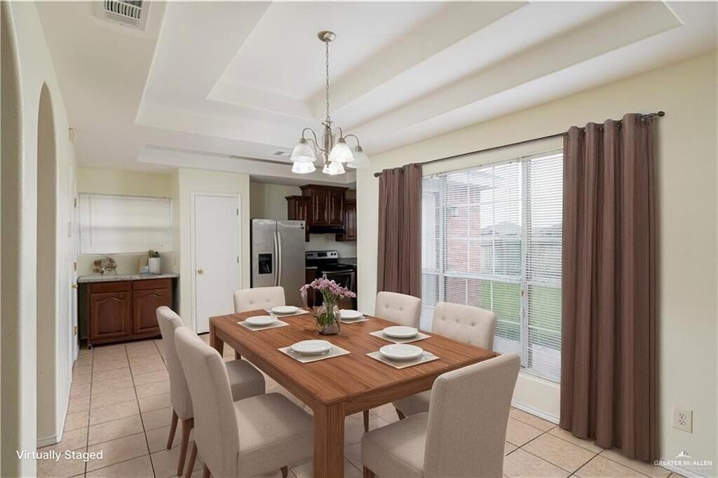 Great opportunity to rent in a very centralized location of Edinburg! Very close to the Expressway,Wall Mart,the soccer stadium,and many other top destinations,this 4 bedroom and 2 bath home is ready for you today! Featuring 1512 Living SF,this home has been well maintained and features fresh tiling and carpet throughout the home. Large living area that is separated from the kitchen / dining along with very spacious bedrooms. The master bedroom and bathroom is pleasantly efficient! Ring system available for hookup in addition to solar panels that will save you money on your electricity New roof and fence area! Call today before its too late!