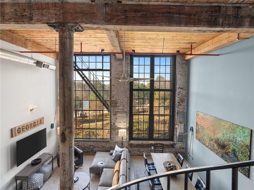 Welcome home to your one of a kind historic Stacks Loft. The Stacks loft community is gated,located in the heart of Atlanta's Cabbagetown neighborhood and a few blocks to the Beltllne. The character and aesthetics of the original cotton mill structure surround you with soaring massive wooden beams,original brick walls,polished concrete floors. The open floor concept from the kitchen,dining and living room area are perfect for entertaining. Kitchen features stainless steel appliances,quartz countertops with dark cabinetry. The primary bedroom is separate upstairs,has a walk in closet and private bathroom. The amenity areas have recently been completely renovated offering a large dog park,outdoor fireplace with multiple seating areas,an Olympic-sized pool,a state-of-the-art fitness center,four electric car charging stations and separate firepit sitting area under the courtyard trees. Make sure to see the rooftop deck with panoramic views of the Atlanta skyline. This community connects to Carroll Street where you'll find multiple restaurants and other retail. The nearby Atlanta Beltline will connect you to Krog Street Market and further on to Ponce City Market.
