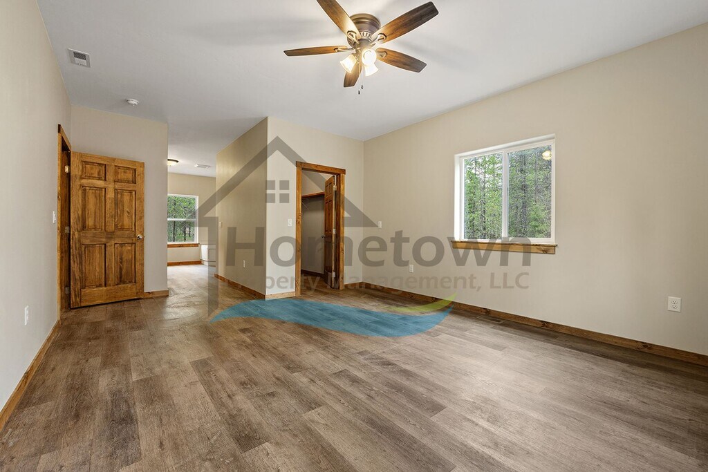 Built in 2026, this stunning home sits in the outskirts of Blanchard with views of forested North Idaho hills all around you. At 2,350 square feet, this home features four bedrooms, two bathrooms, a fully appointed kitchen, a laundry room, and an attached two-car garage, all on a rustic lot surrounded by pine trees in every direction. Countryside Lane is a rustic road taking you directly to the home's driveway. The front entrance sits on a deck large enough for a small set of outdoor furniture. The deck sits under a decorative canopy protecting you from the elements as you arrive. Upon initial entry, you step right into the home's expansive living, dining, and kitchen combination open floor plan great room. The living room area features a ceiling fan light fixture and two large windows bringing an abundance of natural light into the room. The dining area is immediately adjacent. This dining room sits next to a sliding glass door and has its own chandelier. The kitchen starts with a large kitchen island. This island has its own set of cupboards and drawers, pendant lighting overhead, and a breakfast bar wide enough to accommodate four bar stools. The rest of the kitchen comes complete with granite countertops, a stainless steel deep sink, a large stainless steel refrigerator, a stainless steel electric stove and oven, a stainless steel built-in microwave, a stainless steel dishwasher, rows of pine cabinetry above and below the counters, and an extra large walk-in pantry. A hallway adjacent to the living area leads to the master bedroom, two guest bedrooms, the guest bathroom, and the laundry room. The master bedroom is an extra large bedroom with a lighted walk-in closet, a ceiling fan light fixture, and an ensuite bathroom. This master bathroom includes a dual sink vanity with cupboards and drawers, linen cupboards, a deep soaking tub, and a dual shower head shower stall with sliding glass doors. Both guest bedrooms on this side of the home feature large closets. The guest bathroom is a full bath with a tub and shower, a sink vanity with cupboards and drawers, and linen cupboards. The laundry room comes with a folding counter with cupboards and drawers. Washer and dryer hookups are readily available for tenants to use. The hallway adjacent to the kitchen leads to the third guest bedroom. This bedroom also has its own closet. The location of this bedroom would make it an ideal home office. The sliding glass door in the dining area leads to a covered deck and to the home's back yard. There is also an entrance into the home inside the garage. This entrance takes you directly into the kitchen. Floors throughout the home are luxury vinyl plank flooring. The home includes central air conditioning, while heat is provided by an electric forced air furnace. Both are controlled by a thermostat in the hallway. To see a walk-through video of the home, visit the following URL: (coming March 24, 2026) No smoking. No pets. Application Fee: $40.00 Security Deposit: $2,800.00 Apply online at www.ht- Please call for more information. *Property information is deemed reliable but is not guaranteed.*