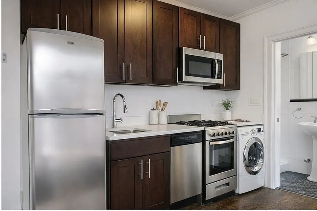 Classic East Village Pre-War Apartment at 170 East 2nd StreetExperience the best of East Village living in this charming pre-war walk-up at 170 East 2nd Street. With timeless details and modern conveniences, this apartment offers style, comfort, and convenience in one perfect package.Photos are virtually stagedApartment Highlights: In-Unit Washer & Dryer: Enjoy the ultimate convenience of laundry at home. Modern Kitchen: Dishwasher and stainless steel appliances make cooking and entertaining effortless. Spacious Queen Bedroom: Bathed in natural light for a warm and inviting retreat. Elegant Finishes: Hardwood floors, recessed lighting, and crown and baseboard moldings add classic sophistication. Luxury Bathroom & Marble Countertops: Thoughtfully designed with style and comfort in mind.Building Amenities: Renovated lobby and hallways with modern touches Contemporary recessed lighting throughoutPrime Location:Just steps from the 6 train, this apartment puts you in the heart of the East Villageclose to top restaurants, shops, and the vibrant energy of downtown Manhattan.Dont miss the chance to call this stylish, comfortable, and convenient East Village apartment your home!Move in breakdown: One month rent + one month security deposit due at lease signing.Additional Fees: $20 application fee per person (applicant and/or guarantor) - covers cost of background and credit check.