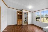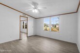 Enjoy country living in this charming 3-bedroom, 2-bath double-wide home situated on a large lot. The kitchen is equipped with stainless steel appliances and an island, perfect for cooking and entertaining. Laminate flooring flows throughout the home, adding a modern touch. The master suite features a private bath and a walk-in closet for plenty of storage. Step outside to a huge fenced backyard with a storage shed and garden boxes--ideal for growing vegetables or beautiful flowers.Schedule your showing today--this home won't last long!