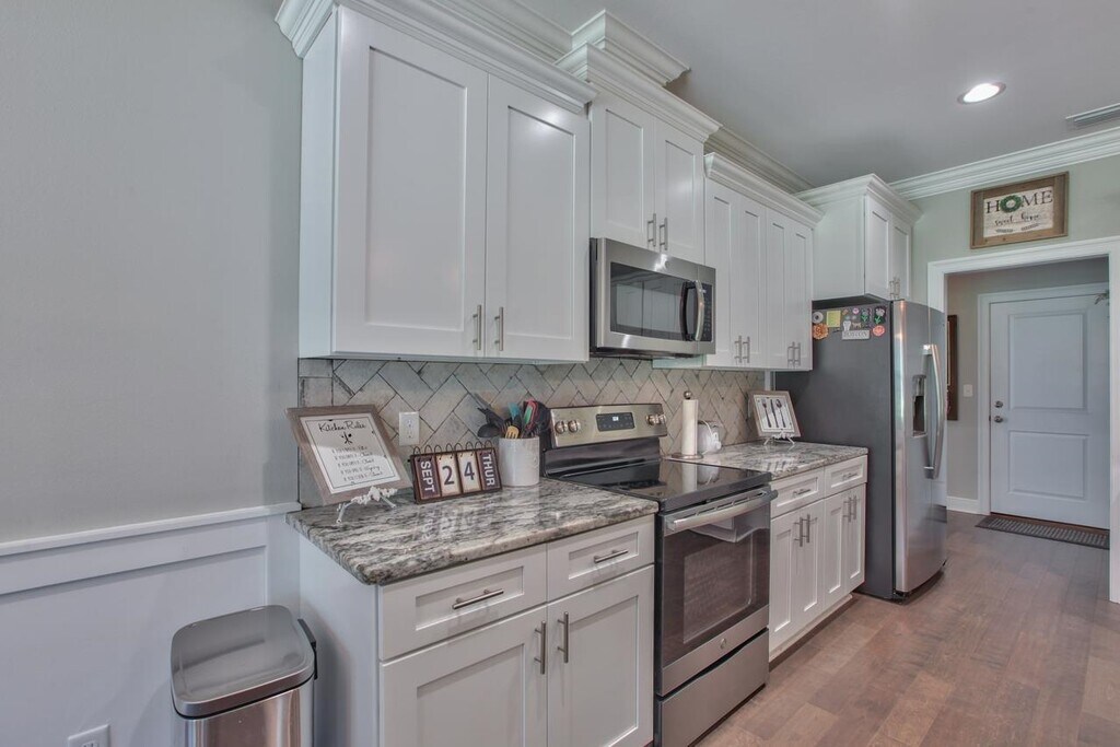 Built in 2019,this luxury 1746 square foot 3 bedroom/ 2 bath home has exquisite trim in every room. The living room features a double trey ceiling with a large ceiling fan and beautiful engineered hardwood floors. Spacious screened in back porch overlooks the large fenced in backyard. The kitchen has a large island over looking the living room,stainless steel appliances,tile backsplash,granite,and plenty of cabinets. The large master bath features a jetted garden tub,tiled shower and a separate water closet. Plenty of room for all your clothes in the large walk in closet. Monthly household income at least 3.5 to 4 times the monthly rent. No prior evictions. No smokers/vapers. Pets on a case by case basis with a non-refundable $500 pet fee and $50 monthly pet rent. No pit bulls or other dogs deemed dangerous by insurance company. No chained or outdoors only pets. The security deposit is $5000. No trampolines.