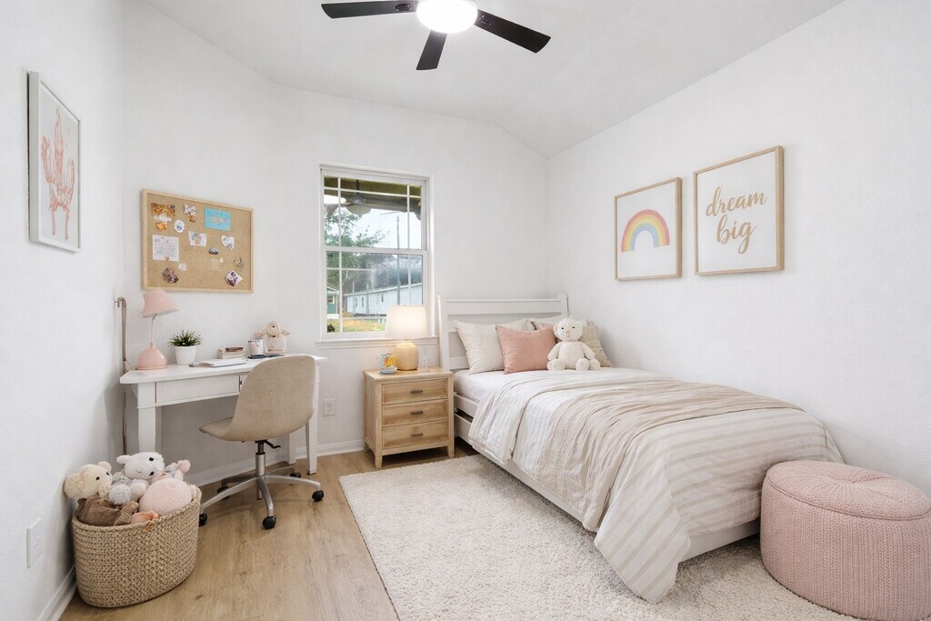 Welcome home to this beautifully refreshed property offering modern finishes,spacious design,and peaceful surroundings. Recently updated throughout,this home features brand new stone countertops and stylish new faucets,creating a clean,contemporary kitchen and bath experience. The interior has been freshly painted and upgraded with brand new luxury vinyl plank flooring,new remote-controlled lighting and fans throughout,combining durability with an elegant look that’s perfect for everyday living. Step inside and immediately notice the very high ceilings throughout the home,providing an open,airy feel with abundant natural light. The spacious primary suite is designed for comfort and relaxation,featuring a separate walk-in shower and a garden-size soaking bathtub—your own private retreat at the end of the day. HUGE Fully fenced yard even has a separated section for pets or chickens! Call me for a showing today! MLS# 83932538