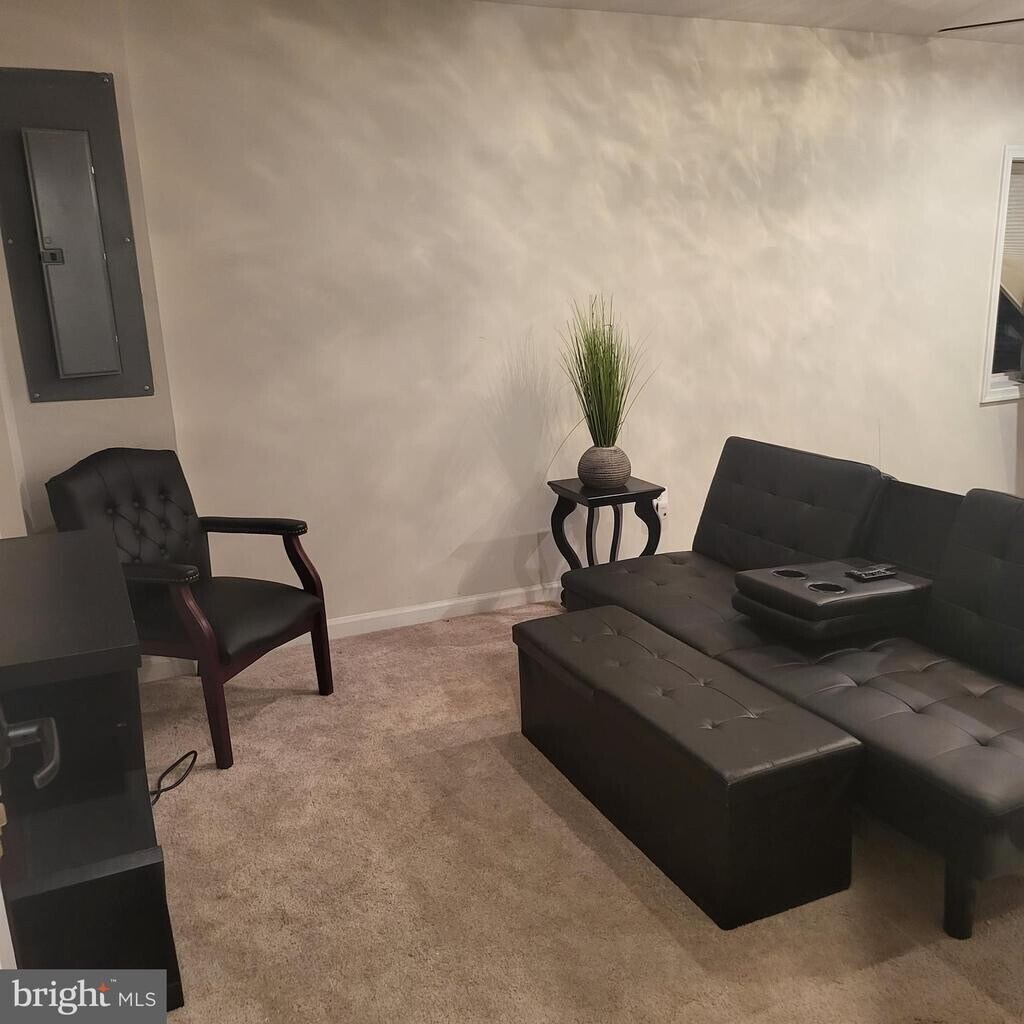 Furnished private basement suite available in end-unit townhouse in Stafford. Convenient to Interstate 95, Marine Corps Base Quantico, hospitals, shopping, and dining; 15–20 minutes to Fredericksburg and Woodbridge. Suite features private full bath and kitchenette with microwave (air fryer/broiler/convection), Instant Pot, sink with disposal, and refrigerator (no dishwasher). Furnishings include queen bed, futon (twin), chair, nightstand, adjustable coffee/dining table, and 50†TV. Shared front entrance provides direct access to basement; no need to enter main living areas. Utilities included (with cap). Internet included. Street parking. Shared fenced backyard with deck, patio, and fire pit. Portable washer/dryer on site; laundromat nearby. Prefer 1-year lease. No smoking Ideal for one occupant. No pets. Renters insurance required. Upper levels separately secured and rented; two dogs reside upstairs. Upstairs tenants rent the garage and driveway. Listing agent has a financial interest.