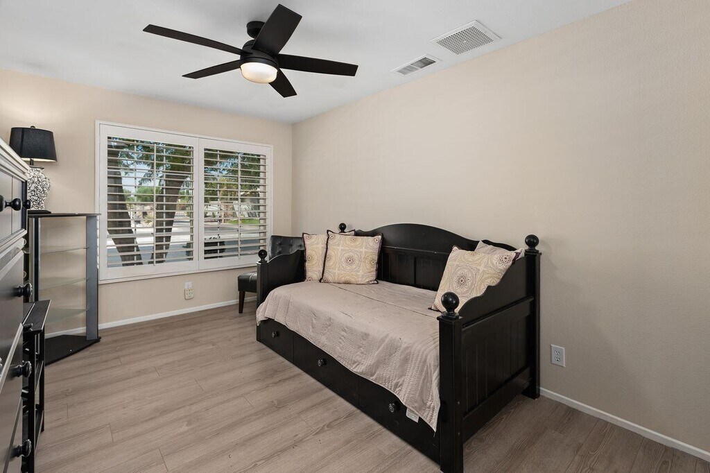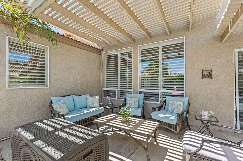 Long term AVAILABLE November 2025- FURNISHED-. Private Pool and Designer Decorated: This upgraded,designer decorated 3 BD + office 2 bath home with private POOL,Gated Community and centrally located in one of the most desirable locations in the Valley. Merano is one of the most sought after communities in the desert. The upgrades include roll down solar shades,tile & wood floors,covered patio,commercial misting system,Pebble Tec saltwater pool & spa. This back yard feels like your own private Oasis. Minutes to public Tennis,Pickle Ball,and Hiking Trails. Check out the community Center at Palm Desert Civic Center Park and resident GOLF at Desert Willow. Walk to Bristol Farms,freeway close,1 mile to Eisenhower Medical Center,3 miles to dinning and shopping on El Paseo (The Rodeo Drive of the Desert) So much to do and see in Palm Desert! Super cute and turnkey furnished ready for your vacation or Long term stay. Price is for a Yearly rental call us for Snowbird Rates (varies by the time of year and number of months!)