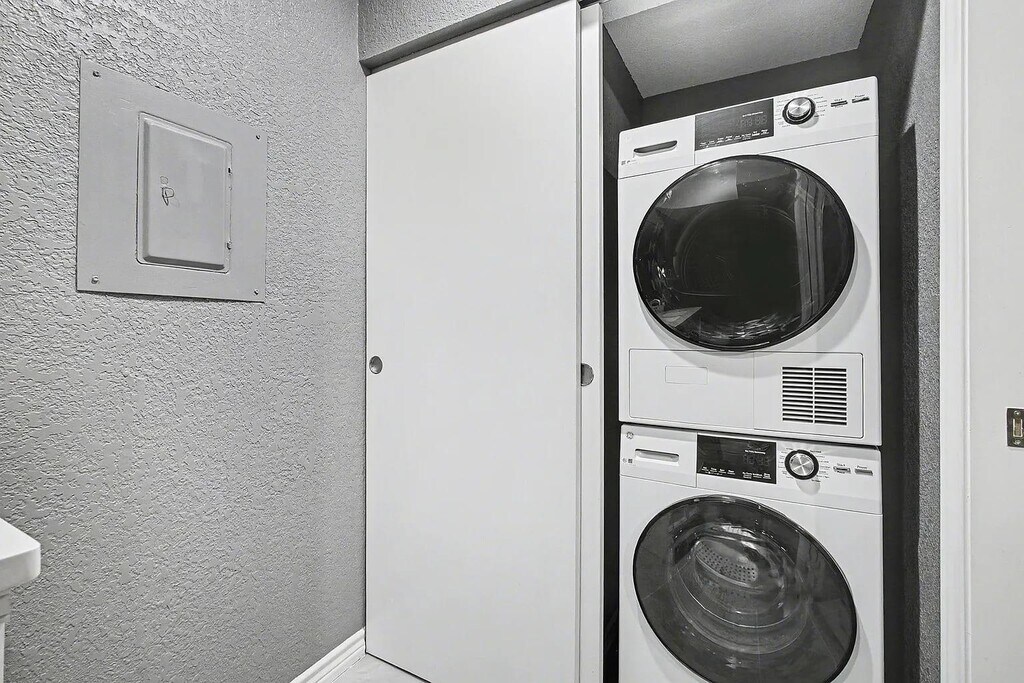 first floor condo featuring 1 bedroom and 1 bathroom in a prime location Completely renovated first floor condo featuring 1 bedroom and 1 bathroom in a prime location. Conveniently situated near AT&T Stadium, Globe Life Field, Hurricane Harbor, and just 10 minutes from DFW Airport. Updates include an open, inviting living space, white kitchen cabinetry, quartz countertops, stainless steel appliances, and 24 hour waterproof luxury vinyl plank flooring. The modern bathroom offers a walk-in shower with custom tile, built in bench, wide vanity, and a space-saving pocket door. Additional features include a front-loading, stackable stainless steel washer and dryer, scraped and freshly painted ceilings, not popcorn, and recessed lighting.
