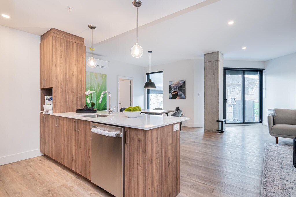 Condo for Rent – LaSalle (New Construction) Available Now Location: 2-minute walk to Angrignon Metro 15 minutes to Downtown Montreal by metro Units Available: 1 Bedroom / 1 Bathroom – starting at $1,695 2 Bedrooms / 1 Bathroom – starting at $2,103 Inclusions: All appliances, wall A/C, air exchanger, curtains, light fixtures, hot water, and 1 locker Amenities: Indoor pool, sauna, terrace with BBQ, dog park, gym, game room, two studios, car wash station, golf simulator, storage units, and indoor bike racks Beautiful luxury condo perfectly located next to Angrignon Metro and just a short walk from Angrignon Park and the shopping center. Enjoy an open kitchen with quartz countertops and all new appliances, including a washer and dryer, complemented by a large balcony. The building offers fantastic amenities, including an indoor pool, sauna, exercise room, game room, indoor golf simulator, café, dog park, and a spacious terrace with BBQ facilities. It's very quiet and secure, with video surveillance and coded access. Pets are allowed. ACTIVITIES AND AMENITIES GROUND Level * Main Entrance * Pool & Sauna * Lobby * Terrace with Exterior BBQ * Dog Park 2nd Floor * Two Studios * Fitness Room * Game Room BASEMENT LEVEL * Car Wash Station * Golf Simulator * Storage Units * Indoor Bike Racks