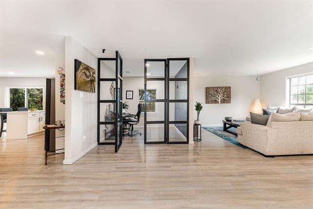 Craving single-story ease, modern style and room to breathe? 1700 Delaford Circle checks every box. Set on a sweeping cul-de-sac corner in north Carrollton, this bright, move-in-ready home delivers the space and flexibility today’s buyers crave—with no HOA telling you how to live. Step inside to an airy, open plan anchored by a dramatic steel-frame glass office—the perfect work-from-home, gym or play zone that keeps sight-lines wide-open. Wood-look plank flooring guides you to the reimagined kitchen: crisp quartz counters, generous prep island, stainless appliances and a serving bar that overlooks the deep backyard—ideal for grilling season. The split primary retreat offers privacy plus a walk-in closet and spa-inspired shower, while two secondary bedrooms share a refreshed full bath. Outside, the massive fenced yard begs for games of tag, garden beds, a future pool—your call. Walk to Davis Elementary, Blalack Middle, and Creekview High School, or hop in the car and reach Rosemeade Recreation and Aquatic Center, dining, and major highways in minutes. Wide lot, open feel, endless options — come experience the freedom of Delaford before someone else claims it.