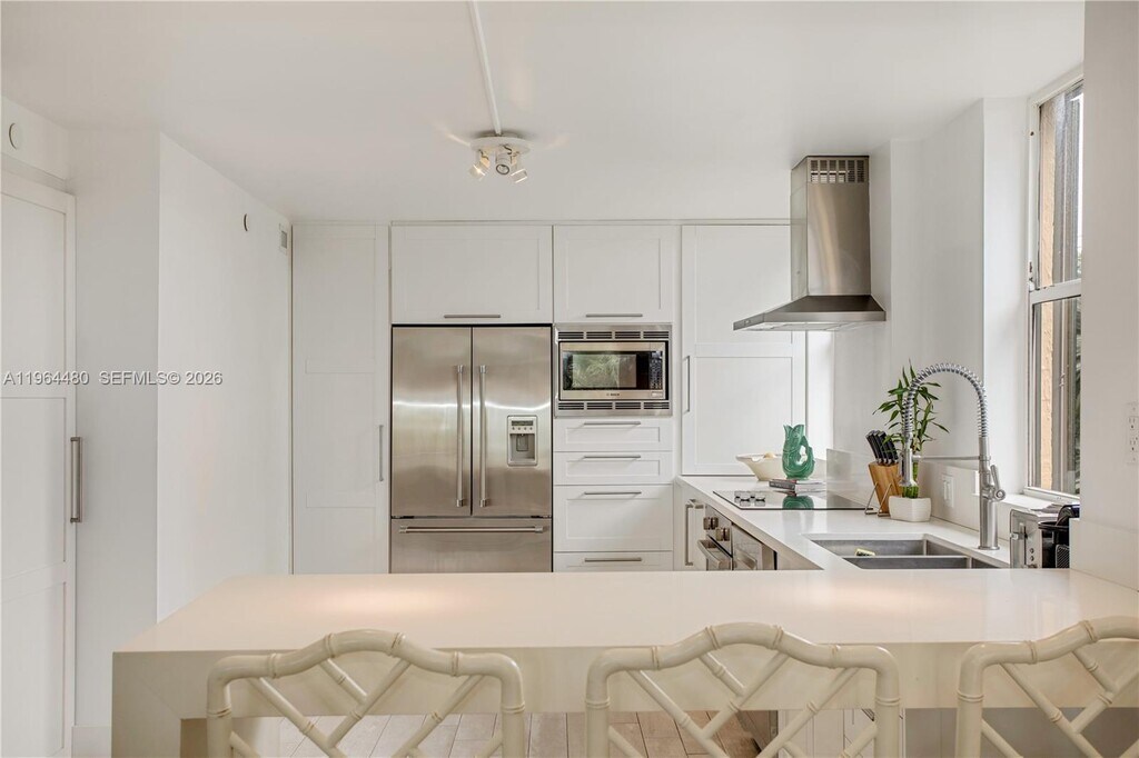 This is a true hidden gem, nestled in a boutique complex overlooking Biscayne Bay. This private oasis features a private elevator that opens up right into your living room. Situated in the heart of Coconut Grove, enjoy an expansive wrap around balcony with stunning water views. Completely furnished and fully renovated open floor plan condo boasts charming Coconut Grove style furnishings, wooden floors, stainless steel appliances, washer/dryer in the unit, breakfast bar, and a hammock to enjoy the serene sunrises. This unit comes with 2 reserved parking spots, gated community, and heated pool over looking the Bay. MLS # A11964480