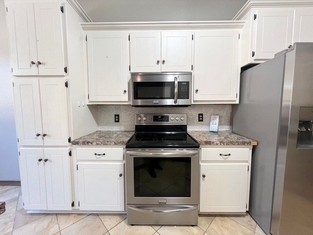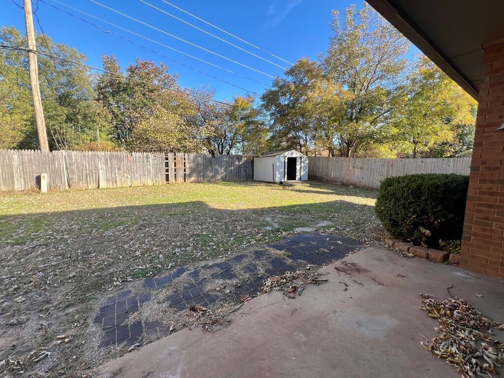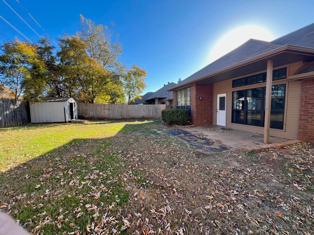 Apply now: This Edmond home has ample room with 4 bedrooms 2.5 bathrooms. This home boasts natural light, plenty of storage , soaking tub, tub and walk in shower, walk in closets , ceilings fans, wood burning fireplace, fully equipped kitchen and Large Pantry! 3 car garage with a Storm Shelter. The backyard is equipped with a covered porch a work shed along with a storage shed. Call us today to take a tour! Elevate Property Management