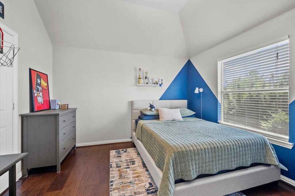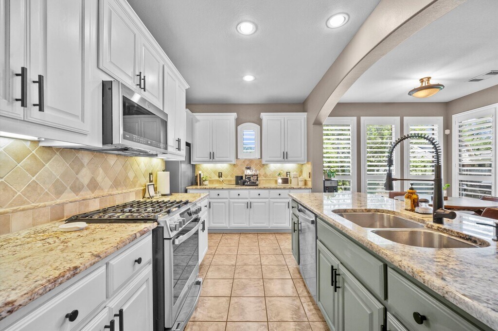 Tucked away on a quiet cul-de-sac in the highly sought-after Eagle Springs,this beautiful Highland Homes property offers space,style,and efficiency. Featuring 4 bedrooms and 3 FULL baths,with 2 bedrooms down and 2 up,plus a spacious game room. The open layout showcases elevated ceilings,a stunning stone fireplace,wrought iron staircase,and Grandiose Plantation Wood Shutters throughout the first floor. The island kitchen offers granite countertops,ample cabinet space,and room to gather. Enjoy major savings with solar panels—lower electric bills during those hot Texas summers. New 2022 A/C units. Step outside to a covered patio and large yard with mature landscaping and a sprinkler system. 3-CAR GARAGE with a through door to the backyard for easy access and ventilation. Walking distance to West Lake Middle School and minutes from the new HEB and up-and-coming The Groves Commons. MLS# 23806357