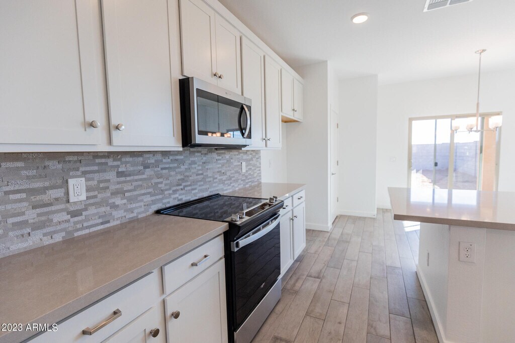 Welcome to Northern Farms by Arcadia Communities,a newly constructed community located in Waddell! This 2022 new construction home features include an open and thoughtfully designed floor plan with 3 large bedrooms,large kitchen w/ island,stainless steel appliances,luxury vinyl plank flooring,W/D & two car garage. Artificial turf and desert landscaping installed in the backyard. Just a short drive away from restaurants,grocery stores,and the zoo! *Photos are of another unit similar in floorplan and design.
