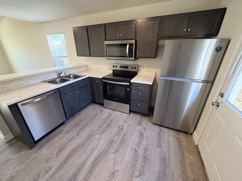 This spacious 4-bedroom,2-bathroom duplex offers easy access to Highway 63 and I‑70,making commuting and travel throughout Columbia simple. Recently fully remodeled,the home features stainless steel appliances,brand-new bathroom vanities,and durable hard surface flooring throughout and many other new additions. The main-level bedroom includes a walk-in closet,while the three upper-level bedrooms provide ample storage along with an additional closet on the second level. Additional perks include a 1-car garage,driveway space for up to three vehicles,and included mowing services. The outdoor area offers plenty of room for gardening,play,or entertaining. Ideally located near schools,shopping,and local amenities. Call for a showing today!