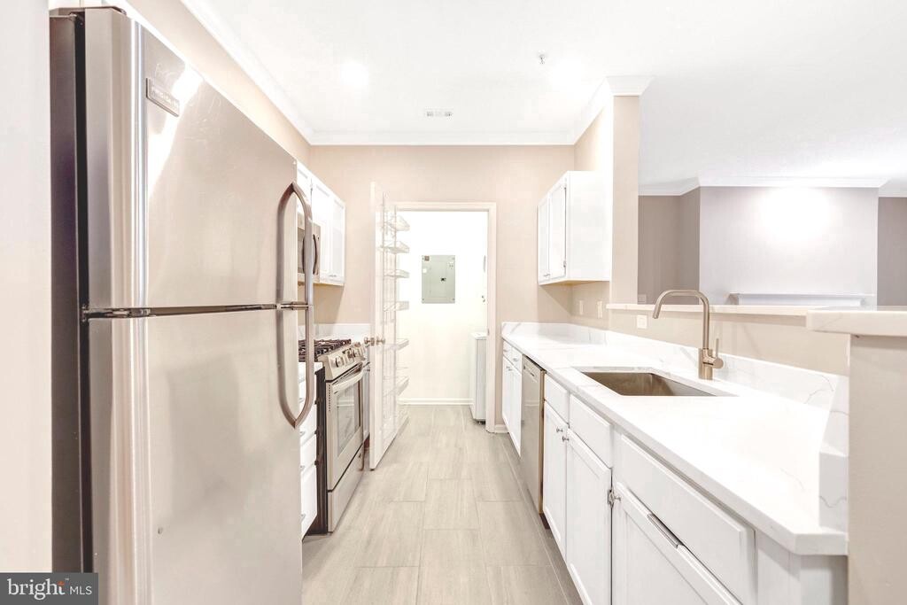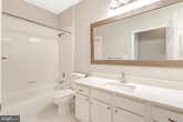 Welcome to luxury living in the heart of Reston! This beautifully renovated 2-bedroom, 2-bathroom condo in Edgewater at Town Center offers the perfect mix of comfort, style, and convenience. With 1,224 sq ft, it features the largest floor plan in the community, a step-free private entrance, and sun-soaked southern exposure throughout the spacious, open-concept layout. Enjoy 9-foot ceilings, hardwood floors, crown molding, and a cozy gas fireplace in the living area. The chef-inspired kitchen includes quartz countertops, stainless steel appliances, gas cooking, a stylish tile backsplash, recessed lighting, and durable porcelain tile floors. A large walk-in pantry/laundry room with a full-size washer and dryer adds everyday convenience. The primary suite includes a huge walk-in closet and a private ensuite bath, while the second bedroom is perfect for guests, an office, or roommates. Relax outside on your private terrace with direct access to a large walk-in storage closet. Community amenities include a fitness center, outdoor pool, pet area, and tranquil pond. Just minutes from Reston hospital, Whole Foods, Trader Joe’s, the W&OD Trail, Metro (1 mile), and all the shops and dining at Reston Town Center. Water, trash, and HVAC maintenance are included. Don’t miss your chance to live in one of Reston’s most sought-after communities!