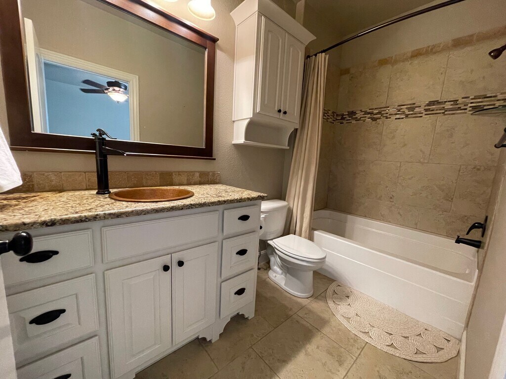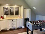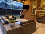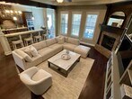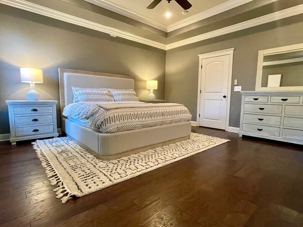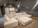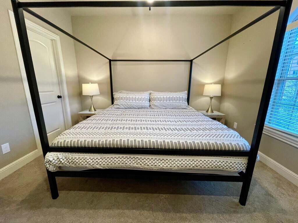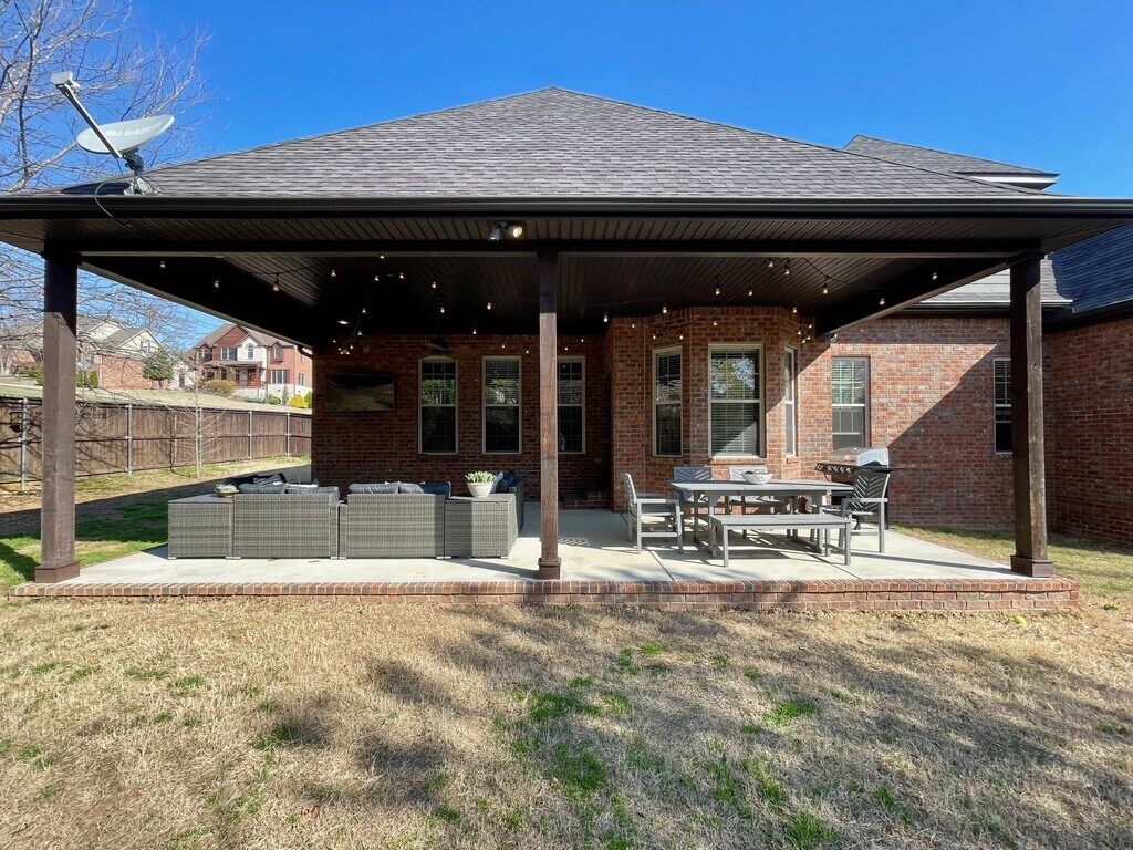 Step into this 5 bedroom, 4 ½ bath, 4200 sq ft, meticulously furnished home. This executive home has been carefully curated with discerning professional families in mind, nestled in a pristine neighborhood, with a quick commute to Walmart Corporate Campus and tailored for corporate lifestyles. Discover an array of amenities designed to elevate your comfort and leisure. The main floor welcomes you with a spacious home office, complete with a sit/stand desk outfitted with a hub and high-resolution monitor, perfect for remote work setups and complemented by a convenient attached powder room. Delight in culinary endeavors in the fully equipped kitchen, boasting high-end appliances, granite countertops throughout, a wine bar & charcuterie station, walk-in pantry, snack counter, inviting breakfast nook and coffee bar. Relax and rejuvenate in the inviting living room, adorned with a library wall, seasonal fireplace and a 70-inch smart TV, offering an ideal retreat after a day of work or exploration. The main floor also includes a large laundry room with new washer and dryer, built in lockers with hanging space and cubbies as well as easy access to the backyard covered patio. Retire to the primary suite, featuring a large luxurious ensuite bathroom with a clawfoot cast iron soaking tub and oversized shower with double shower head and built-in bench. This bathroom has an attached oversized walk-in closet. A second main-floor bedroom suite offers its own ensuite bathroom, built-in bookshelves and walk-in closet, while an upstairs bunkroom/game room provides entertainment with a smart TV, XL beanbag, retro game system, and Nintendo Wii. Two additional upstairs bedrooms boast walk-in closets and 2 more full bathrooms complete the comfortable sleeping arrangements. For cinematic indulgence or gaming adventures, head to the large home theater and game room equipped with a 150-inch projector screen, surround sound, Xbox One, streaming, oversized sectional, foosball table, snack bar w/drink fridge & massage chair. The spacious garage accommodates three cars with plenty of additional storage for bikes and outdoor gear. It is also equipped with a workshop area featuring additional work lighting and speakers, a bike repair stand, shelving & gear hooks. Outside, the backyard oasis beckons, featuring a propane grill, a large, covered seating area with an outdoor TV, dining table, hammock chairs, and charming string lights. The privacy fenced backyard is perfect for family-friendly activities and is stocked with Jumbo Pong, Corn Hole, and Giant Tumbling Tower. Conveniently located near Crystal Bridges and Downtown Bentonville, including the Momentary Art Museum, shops, bike & hike trails, historic sites, and restaurants, this home offers the perfect fusion of outdoor exploration and cultural immersion.