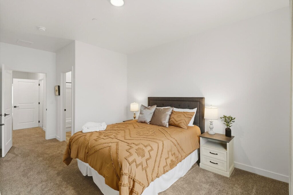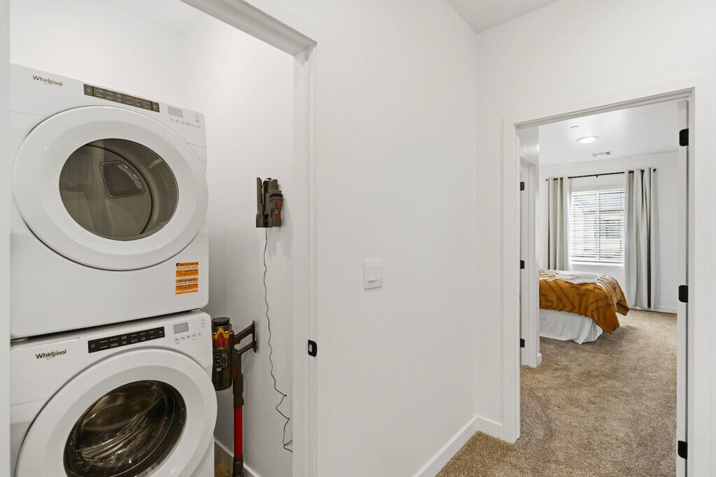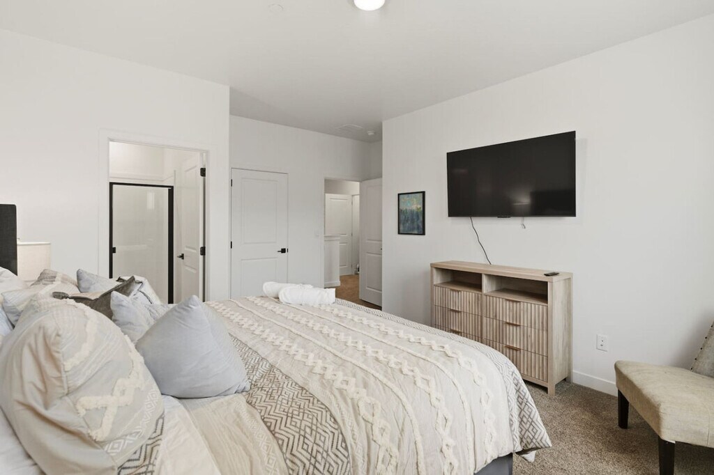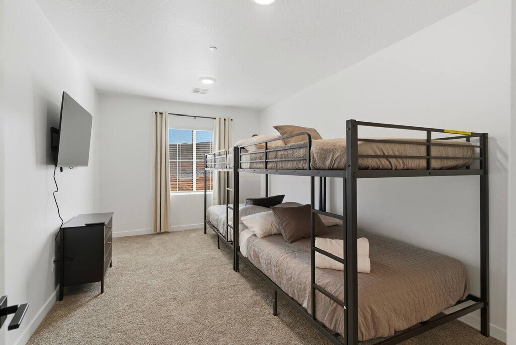The advertised rate of $5,376/month is the lowest available price, based on a 30 day(s) stay with a move-in date of August 4, 2026. Rates vary depending on the duration of stay, season, and other parameters. For exact pricing and additional pricing components, please visit our website and enter your desired move-in and move-out dates. The rate is applicable when billed upfront; it can be higher if billed in multiple payments. Feel at home in this Southern Utah home, perfect for families, friends, and group getaways. This home features four private bedrooms, each with an en-suite bathroom and TV. All four bedrooms are located upstairs. This spacious retreat comfortably accommodates large groups. The main floor features a welcoming entryway that opens to a bright living room with a 75-inch television, a fully equipped kitchen, and a dining area designed for gathering. Upstairs, a cozy secondary living space is perfect for kids, game nights, or quiet downtime. The upstairs laundry room makes longer stays easy and stress-free. Two cars fit comfortably in the driveway. Overflow parking is located in small community lots at the end of each block. Please plan accordingly for larger groups. Pets are welcome at the cost of $10 per pet per day. Enjoy a short walk to resort-style community amenities, including a community pool with shade and loungers, a game room, pickleball courts, cornhole, outdoor ping pong, walking paths, and shared spaces. Quail Creek State Park and Sand Hollow State Park are 13 miles away, offering boating, fishing, watersports, and off-road adventures. Snow Canyon State Park, with hiking, red rock views, and trails, is 19 miles away. Zion National Park, world-famous for stunning canyons and scenic drives, is 39 miles away. Nearby St. George golf courses include Green Spring Golf Course and Coral Canyon Golf Course (7 miles), Southgate Golf Club (11 miles), Sky Mountain Golf Course (13 miles), Sunbrook Golf Club (14 miles), and The Ledges of St. George (17 miles). There is active construction in the area surrounding the community, and noise may be present during typical working hours, approximately 8:00 AM – 5:00 PM. No smoking or vaping is allowed on the premises. A $200 per day fee will be assessed for each day of the reservation if it is found that guests have been smoking or vaping on the premises. For unauthorized pets, a $250 fee will be assessed. Quiet hours begin at 10:00 PM each night and continue until sunrise. A $500 fee will be assessed if the cleaners have to move furniture to reset the property for the next guest. [SI]