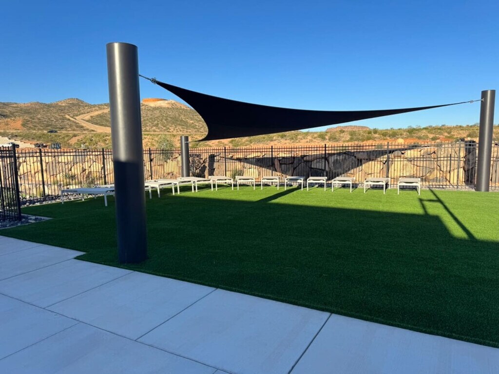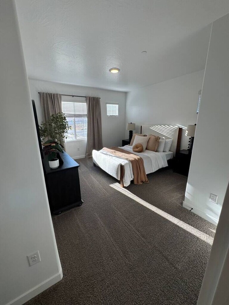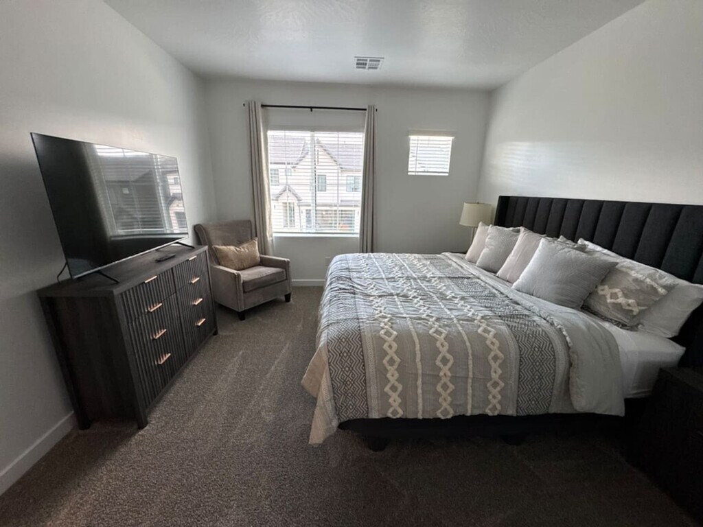 Feel at home in this Southern Utah home perfect for families, friends, and group getaways. This spacious retreat features four private bedrooms, each with an en-suite bathroom and television. This home comfortably accommodates large groups. The main floor features a welcoming entryway that opens to a bright living room with a 75-inch television, a fully equipped kitchen, and a dining area designed for gathering. Upstairs, a cozy secondary living space is perfect for kids, game nights, or quiet downtime, and the upstairs laundry room makes longer stays easy and stress-free. Community amenities include a community pool with shade and loungers, a game room, pickleball courts, cornhole, outdoor ping pong, walking paths, and shared spaces. Parking is available for 2 cars in the driveway and 2 cars in the garage. Overflow parking is located in small community lots at the end of each block. Located near world-class attractions, this home is 13 miles from Quail Creek State Park and Sand Hollow State Park, 19 miles from Snow Canyon State Park, and 39 miles from Zion National Park. Nearby St. George golf courses include Green Spring Golf Course, Coral Canyon Golf Course, Southgate Golf Club, Sky Mountain Golf Course, Sunbrook Golf Club, and The Ledges of St. George. Smoking or vaping is not allowed on the premises, and a $200 per day fee will be assessed for each day of the reservation if it is found that guests have been smoking or vaping on the premises. If the property is pet-friendly, pets are allowed at the cost of $10 per pet per day. For unauthorized pets, a $250 fee will be assessed. Quiet hours begin at 10:00 PM each night and continue until sunrise. Moving furniture is not allowed, and a $500 fee will be assessed if the cleaners have to move furniture to reset the property for the next guest. A $30 fee, per bin, will be assessed for unbagged garbage found in the bins. [SI]