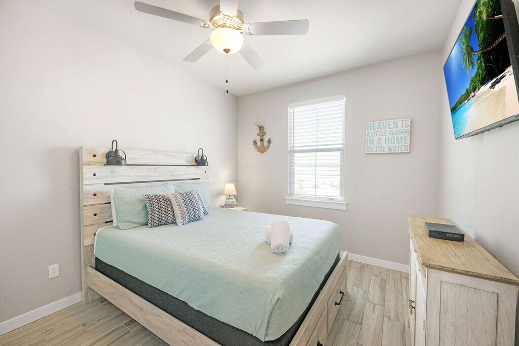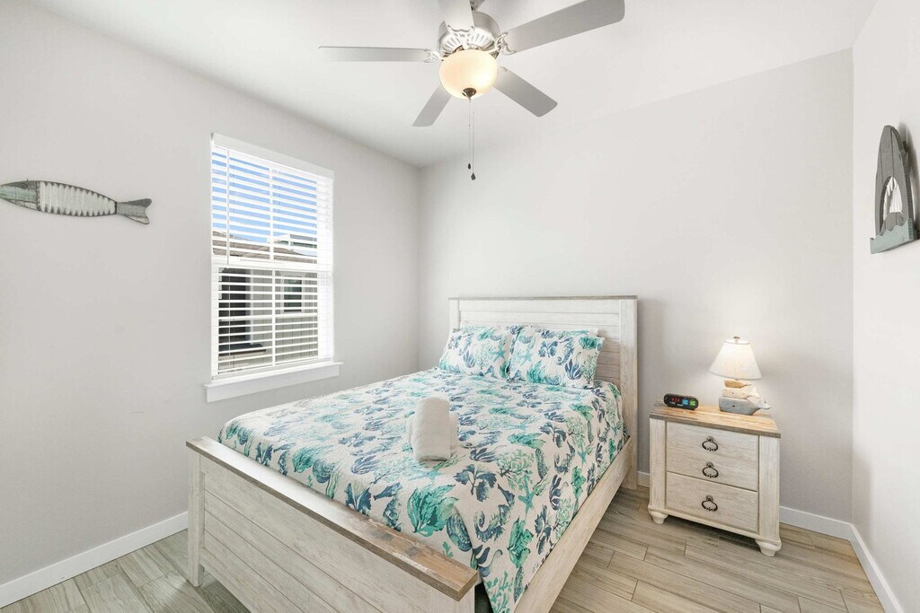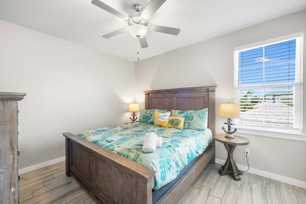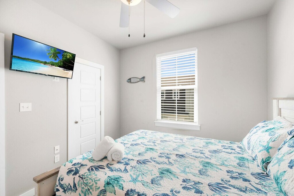 Feel at home in this 3-bedroom, 3-bathroom home in a prime location in Port Aransas, comfortably accommodating up to 7 guests for a dreamy getaway. This charming coastal retreat features bright, beachy interiors with cozy furnishings and inviting spaces to gather and unwind. The fully stocked chef’s kitchen includes high-end stainless appliances, a large refrigerator, ample cabinetry and cooking space, and both Keurig and drip coffee makers. The living room offers a 55” smart TV, a large plush sofa, and leather seating. Community amenities include a heated pool, showers, a picnic table, and a propane grill. Parking is available for 3 cars. Ideally located minutes from the beach, shops, and local dining favorites, this home is close to many attractions. Port Aransas Beach is just 0.5 miles away, and Roberts Point Park is 1.5 miles away. You can also visit the Leonabelle Turnbull Birding Center (1 mile), the Port Aransas Museum & Farley’s Historic Boat Shop (1.2 miles), and enjoy dolphin watching and boat tours (1.5 miles). Nearby restaurants include Tortuga’s Saltwater Grill (0.6 miles), Seafood & Spaghetti Works (0.4 miles), FINS Grill & Icehouse (1.5 miles), Virginia’s on the Bay (1.6 miles), and Grumbles Seafood Co. (1.5 miles). No pets are allowed. No parties are allowed—violations may result in immediate termination of the stay. Parking is available for 3 vehicles, and street parking is not allowed. Guests must be 25 years or older to book this property. Check-in is at 4pm and check-out is at 10am. [SI]