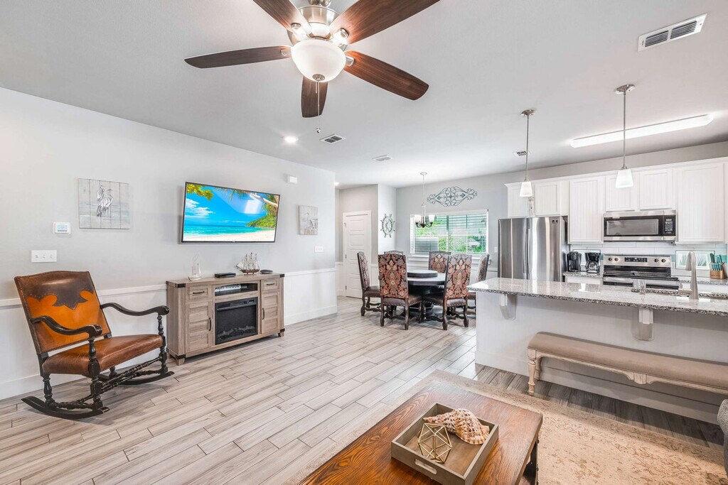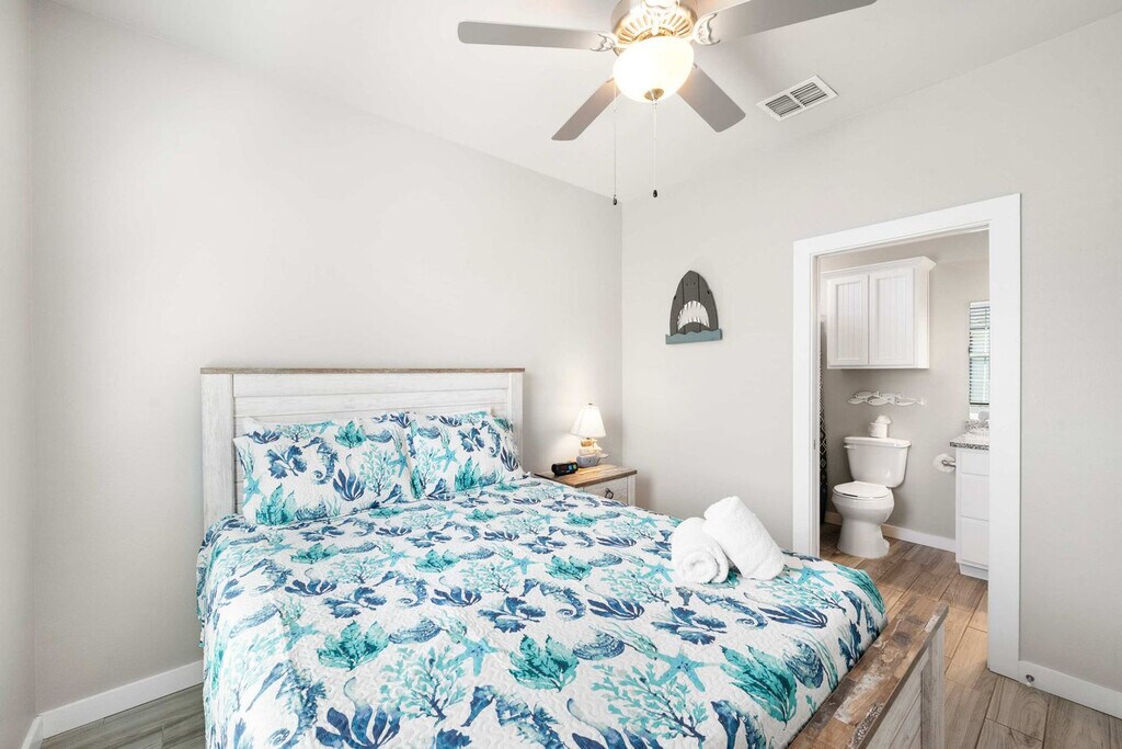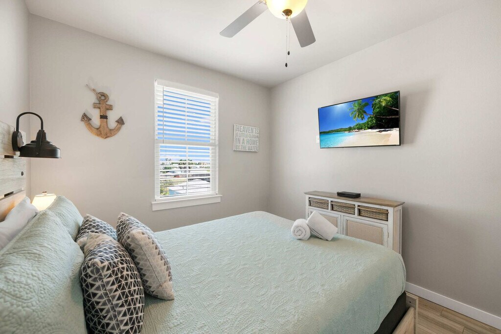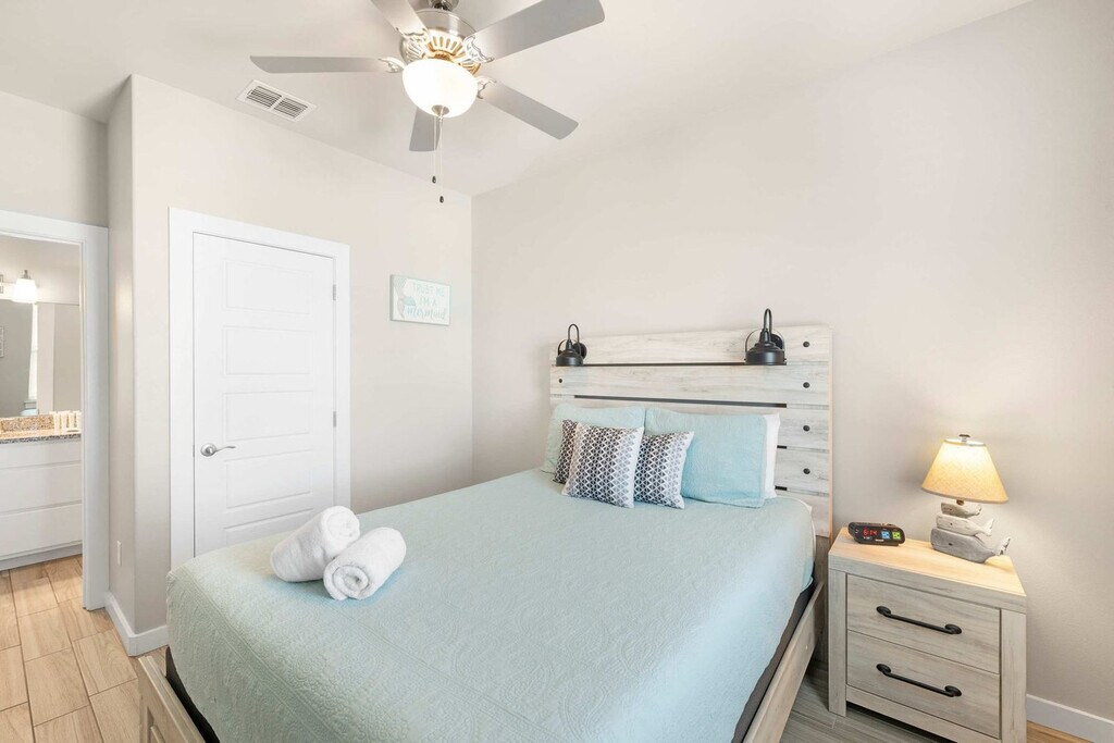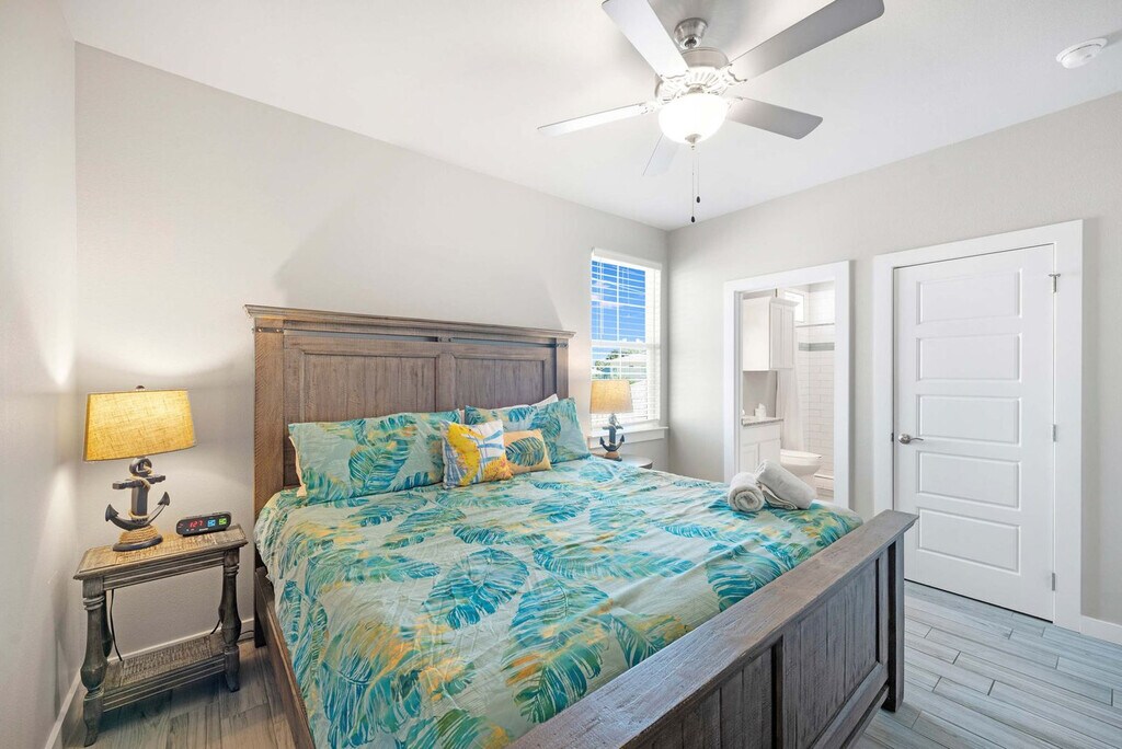 Feel at home in this 3-bedroom, 3-bathroom home in a prime location in Port Aransas, comfortably accommodating up to 7 guests for a dreamy getaway. This charming coastal retreat features bright, beachy interiors with cozy furnishings and inviting spaces to gather and unwind. The fully stocked chef’s kitchen includes high-end stainless appliances, a large refrigerator, ample cabinetry and cooking space, and both Keurig and drip coffee makers. The living room offers a 55” smart TV, a large plush sofa, and leather seating. Community amenities include a heated pool, showers, a picnic table, and a propane grill. Parking is available for 3 cars. Ideally located minutes from the beach, shops, and local dining favorites, this home is close to many attractions. Port Aransas Beach is just 0.5 miles away, and Roberts Point Park is 1.5 miles away. You can also visit the Leonabelle Turnbull Birding Center (1 mile), the Port Aransas Museum & Farley’s Historic Boat Shop (1.2 miles), and enjoy dolphin watching and boat tours (1.5 miles). Nearby restaurants include Tortuga’s Saltwater Grill (0.6 miles), Seafood & Spaghetti Works (0.4 miles), FINS Grill & Icehouse (1.5 miles), Virginia’s on the Bay (1.6 miles), and Grumbles Seafood Co. (1.5 miles). No pets are allowed. No parties are allowed—violations may result in immediate termination of the stay. Parking is available for 3 vehicles, and street parking is not allowed. Guests must be 25 years or older to book this property. Check-in is at 4pm and check-out is at 10am. [SI]