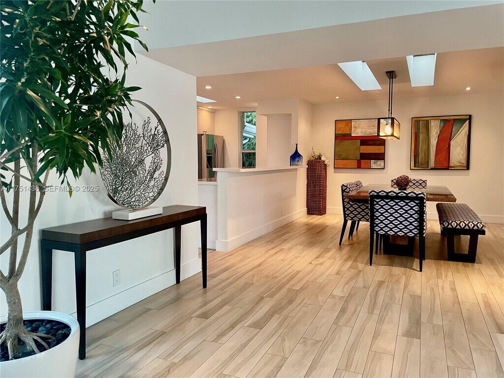 This charming one story waterfront fully renovated home situated in Rio Vista neighborhood is a rare find! Meticulously maintained with an airy comfortable vibe, this quiet abode has incredible natural lighting from the floor to ceiling glass, vaulted ceilings and multiple skylights scattered throughout. The split floor plan includes an Open kitchen w/2 dining areas, a fireplace, & 2 living areas surrounded by lush landscaping and a 2 car garage. Several accesses open to the private patio area where you will find separate seating areas, an inviting pool & the 75' dock is located on a wide canal w/direct ocean access. Amazing location–close to the ocean, Las Olas, 17th St. shops & more. 7 minutes to the airport or I-95. Bring your boat and suitcase to relax and enjoy! A pleasure to show!--