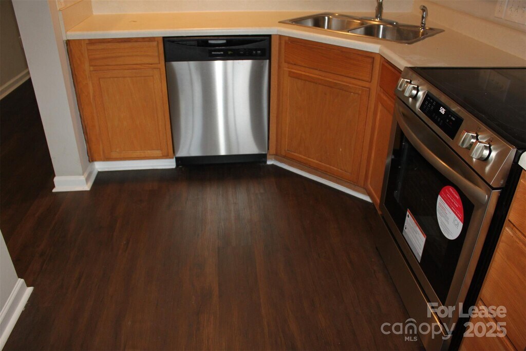 Great location in Old Stone Crossing,nestled in Charlotte’s desirable University area. This spacious 1,200 sq ft townhome features a large family and dining room with an open-concept layout,complemented by a modern kitchen equipped with ALL BRAND-NEW STAINLESS-STEEL APPLIANCES. Upstairs offers two bedrooms and two full bathrooms,including a walk-in closet and ceiling fans for added comfort. The home has been freshly painted and boasts wood laminate flooring throughout — no carpet anywhere. Enjoy a private,tree-lined backyard with a cozy patio and exterior storage room. Rent includes access to the community pool and clubhouse,yard maintenance,water,and sewer. Washer and dryer are also included for your convenience. small pets maybe considered credit>600. W2 income >3x. apply only if qualified. please check application for additional requirements. Apply online.