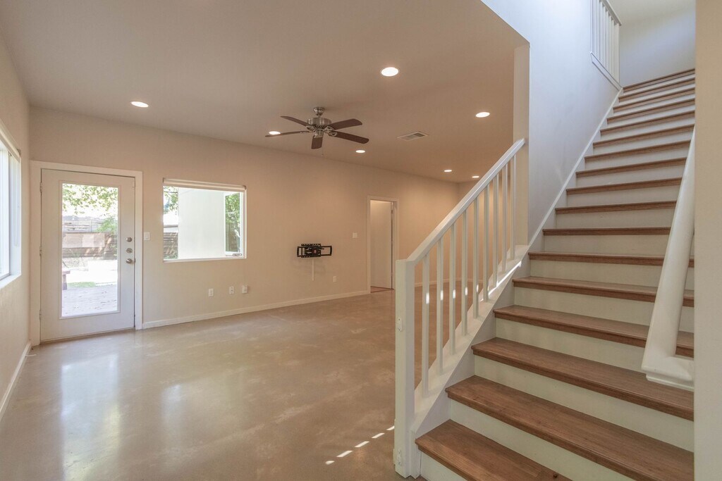 Welcome to 1702 Forest Hill Dr Unit # A, Austin TX 78745, a stunning 3-bedroom, 2.5-bathroom home that perfectly blends comfort and modernity. This two-story home boasts a unique layout that maximizes space and functionality. The interior features stained concrete floors, an abundance of natural light, and central heating and cooling for year-round comfort. The kitchen is a chef's dream with stainless steel appliances and abundant cabinetry. The bedrooms are spacious, and the bathrooms are well-appointed with features like a walk-in shower and dual vanity. The home also comes with a washer/dryer and a one-car garage for added convenience. Outside, you'll find a large back patio, perfect for entertaining, and a fire pit for those cooler nights. The property is beautifully landscaped with shade trees and features a covered balcony, perfect for enjoying the outdoors. Ceiling fans throughout the home ensure a comfortable atmosphere. This home is a perfect blend of style, comfort, and convenience, waiting for you in the heart of Austin, TX. Call Today!