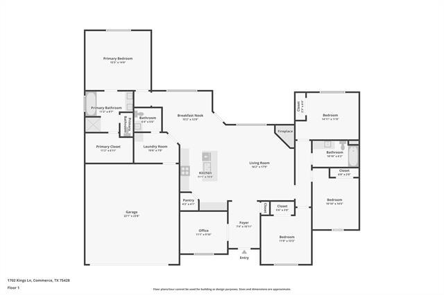 Welcome to 1702 Kings Lane, a beautifully maintained 4-bedroom, 2.5-bath home with a dedicated office space, nestled on a quiet street in one of Commerce’s most desirable and established neighborhoods. This home offers an ideal blend of space, comfort, and flexibility—perfect for growing families, remote workers, or anyone who needs room to spread out. Inside, you’ll find a warm, welcoming layout with generously sized bedrooms, a separate office for working or studying from home, and multiple living and dining areas that make daily living and entertaining effortless. The kitchen features ample cabinet storage, plenty of prep space, and a functional flow into the dining area. The primary suite includes a private bath, while two additional bathrooms accommodate guests and family with ease. Located just minutes from Texas A&M University-Commerce, local schools, parks, restaurants, and shopping—this home offers both small-town peace and big opportunity.