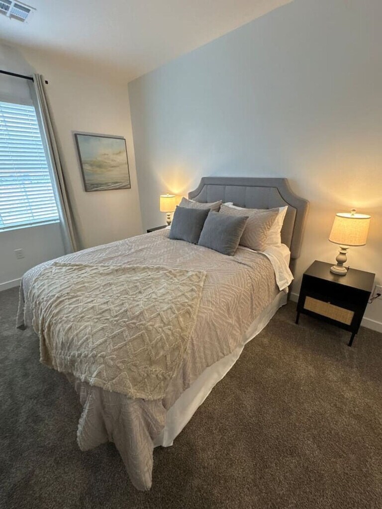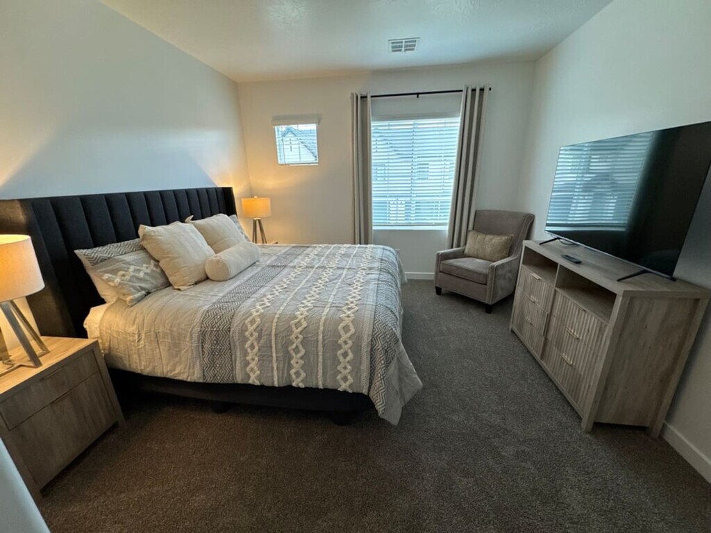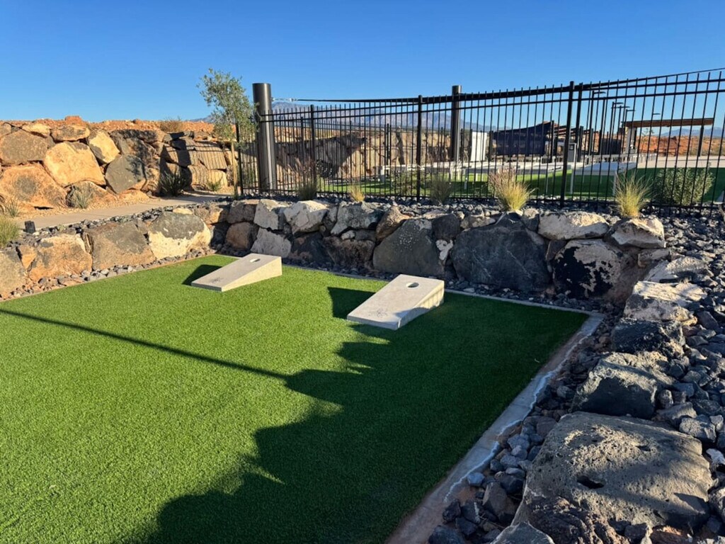Bring your family or large group to this Southern Utah vacation home designed for comfort, privacy, and together time. Feel at home in this property that features four private bedrooms, each with its own en-suite bathroom and TV, plus spacious gathering areas perfect for making memories. All four bedrooms are located upstairs. The main level features a bright, welcoming space with a comfortable living room with a 75” TV, a fully stocked kitchen, and a dining area built for gathering. Upstairs, a secondary living area offers space for kids, games, or quiet downtime, and the upstairs laundry room adds convenience for longer stays. The small backyard is a quaint space to gather but is ideal for stepping outside with a morning coffee or a breath of fresh air. Guests have access to a community pool with shade and loungers, a game room, pickleball courts, cornhole, outdoor ping pong, walking paths and shared spaces. Two cars fit comfortably in the driveway. Overflow parking is located in small community lots at the end of each block. Quail Creek State Park and Sand Hollow State Park for boating, fishing, watersports, and off-road adventure are 13 miles away. Snow Canyon State Park with hiking, red rock views, and trails is 19 miles away. Zion National Park, world-famous for stunning canyons and scenic drives, is 39 miles away. Nearby St. George Golf Courses include Green Spring Golf Course & Coral Canyon Golf Course – 7 miles, Southgate Golf Club – 11 miles, Sky Mountain Golf Course – 13 miles, Sunbrook Golf Club – 14 miles, and The Ledges of St. George – 17 miles. Smoking or vaping is not allowed on the premises. A $200 per day fee will be assessed for each day of the reservation if it is found that guests have been smoking or vaping on the premises. If the property is pet-friendly, pets are allowed at the property at the cost of $10 per pet, per day. For unauthorized pets, a $250 fee will be assessed. Quiet hours begin at 10:00 PM each night and continue until sunrise. Moving furniture is not allowed. A $500 fee will be assessed if the cleaners have to move furniture to reset the property for the next guest. A $30 fee, per bin, will be assessed for unbagged garbage found in the bins. [SI]