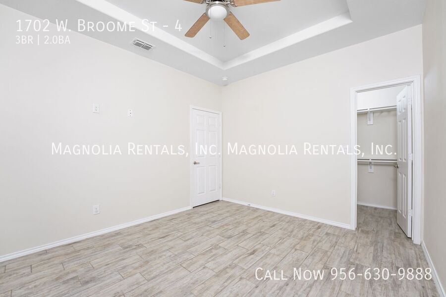 1st Month Free with 13 Month Lease Welcome to 1702 W. BROOME ST, a stunning 3-bedroom, 2-bathroom apartment located in the vibrant city of Edinburg, TX. This gated property boasts an open floor plan with high ceilings, hardwood floors, and modern fixtures that create a sleek and stylish living space. The kitchen is equipped with stainless steel appliances, including a refrigerator, microwave, and stove/oven. A washer and dryer are also included for your convenience. The master bedroom features a walk-in closet and a private bath, providing a luxurious retreat. This pet-friendly property (breed restrictions apply) offers 24/7 maintenance support, ensuring your comfort at all times. The tenant is responsible for electric and water, while trash removal and lawn care are included in the lease. Enjoy the comfort of central AC and the convenience of a 12-month lease. Please note, this is a no-smoking property. Experience the best of Edinburg living at 1702 W. BROOME ST. 12 Month Lease 24/7 Maintenance Support Central Ac Modern Fixtures Pet Friendly With Breed Restriction Tenant Pays Electric & Water Trash Pickup