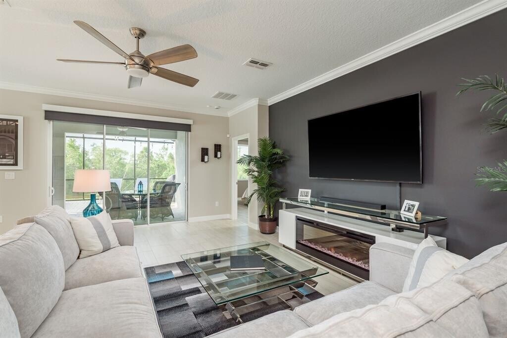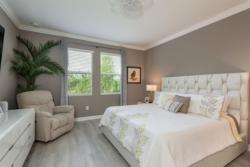 FIRST TIME RENTAL!!! This stunning 3-bedroom,3-bath home sits on a premium lot with serene preserve and pond views in Medley at Angeline,a premier 55+ resort-style community. With thoughtful upgrades,elegant finishes,and incredible attention to detail,this home is designed to impress. Step inside to an open-concept living space filled with natural light. The first-floor primary suite features a beautifully tiled shower and walk-in closet. The gourmet kitchen is a chef's dream,showcasing Premier Frigidaire appliances,a stylish tiled backsplash,and an oversized island perfect for entertaining. Upstairs,you'll find a generous loft,third bedroom,and full bath with a luxurious rainfall tiled,walk-in shower. Outdoor living shines here enjoy the extended,screened lanai with a partially covered seating area,custom waterfall HOT TUB,and privacy drapes. Whether sipping morning coffee or evening wine,this space is the perfect retreat. The 3-car tandem garage has been fully transformed with rubber flooring,an insulated door,AC with vents,and an additional storage room ideal for a flex space,workshop,or home gym. Living in Medley at Angeline means enjoying resort-style amenities every day: Zero entry resort pool + lap pool with poolside bar,Clubhouse with restaurant,yoga studio and fitness center,Pickleball,bocce,shuffleboard and endless social activities. Wine bar and farm to table community garden. Located in an exciting growth corridor,you're just minutes from the upcoming Moffit Cancer Center's Medical City,City Center and Metro Lagoon. Call and schedule your private tour today. This rare rental opportunity won't last long. Lawn Care Included! Flexible Move In! Small dogs will be considered. $75 App fee/adult,$300 non-refundable pet fee each pet (small dogs will be considered),security deposit equal to one month's rent,$75 tenant annual processing fee each household after acceptance,renter's insurance required. MLS# TB8431661