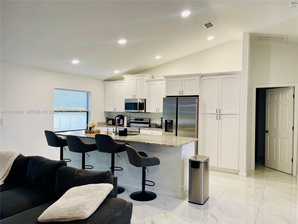 Welcome Home! Rapid Approval. Well maintained and practically new. Built in 2022 over a completely fenced HALF ACRE lot. Porcelain floors throughout the entire house, screened terrace, granite countertops, stainless steal appliances, kitchen cabinets with abundant storage. Security system, and new water treatment system that makes the water completely drinkable. Plenty of space for your above ground pool, RV, and/or Truck Parking. This property also features large closets in all bedrooms and a walk-in closet built into the master bathroom. Open Concept style with separate dining space. Laundry room with cabinets for extra storage (Washer and Dryer Included). Large garage with epoxy flooring. Great location! Close to SW Florida International Airport, supermarkets, schools, stores, hospital, and mayor facilities. Make your appointment today!!! FOR SHOWING APPOINTMENTS AND/OR QUESTIONS ABOUT THE PROPERTY, PLEASE CALL/TEXT LISTING AGENT. MLS # A11918814