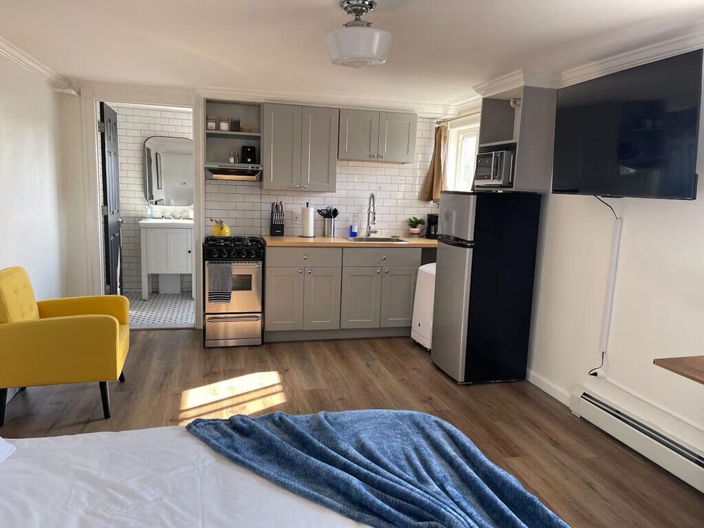 The advertised rate of $1,889/month is the lowest available price, based on a 1 month(s) stay with a move-in date of September 22, 2026. Rates vary depending on the duration of stay, season, and other parameters. For exact pricing and additional pricing components, please visit our website and enter your desired move-in and move-out dates. The rate is applicable when billed upfront; it can be higher if billed in multiple payments. Feel at home in this newly renovated studio apartment located on Grand Island. This is a second-floor apartment in a 28-unit building, accessible via a steep staircase. This stylish apartment is fully stocked and comes with all the amenities you may need for a comfortable stay, including high-quality finishes, fast Wi-Fi, a 55" smart TV with Netflix, and a gourmet kitchen. Laundry units are available in the building and accept credit card payments. A treadmill and exercise bike are also available for use in the building. Tons of off-street parking is available. This apartment is less than a 20-minute drive from the city of Niagara Falls and less than a 20-minute drive from downtown Buffalo. It is located right off the I-90 highway. This trusted partner is working with The Pacquin apartment community to provide this full-service furnished accommodation for those who need somewhere to call home for 1 month+. [SI]