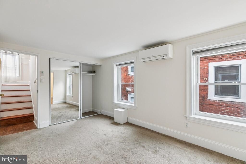 Bi-level, two bedroom plus den (or three bedroom) with beautiful skyline views at a boutique walk-up building in the Art Museum Area. Enter up a flight of stairs into the spacious great room boasting excellent natural light and skyline views from tall windows, built-in shelving, a wood-burning fireplace with marble surround, high ceiling, hardwood floor, and ample space for living, dining, and entertaining. Adjacent to the great room is a fully equipped kitchen offering wood cabinetry, granite countertops, stylish tile backsplash, stainless steel sink with garbage disposal, stainless steel appliances, tile floor, and a passthrough overlooking the living space with breakfast bar. Both bedrooms are generously sized and enjoy great natural light, deep wall closets, and use of a connected ensuite bathroom with white vanity and tub shower. The rear bedroom has access to a wooden deck, perfect for dining al fresco or lounging. Upstairs is the spacious den, that could be used as a third bedroom. It has a large wall closet, incredible views of Center City, open railing overlooking the living space, and an ensuite bathroom with white vanity and stall shower. Additional highlights include a laundry closet with stacked washer/dryer off of the kitchen, recessed lighting, and multiple mini-splits throughout allowing for custom heat and cooling control. This home is in a prime location steps from parks, gardens, restaurants, cafes, markets, and drug stores.